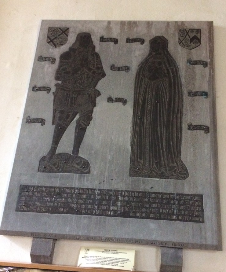 The couple were parents of Sir John Horsey who managed to ‘buy’ Sherborne Abbey at the time of the Monastic Dissolution. He was also the one who sold Longleat to a Johne Thynne of Church Stretton, Shropshire – whose descendants, at a much later date introduced lions to the estate.