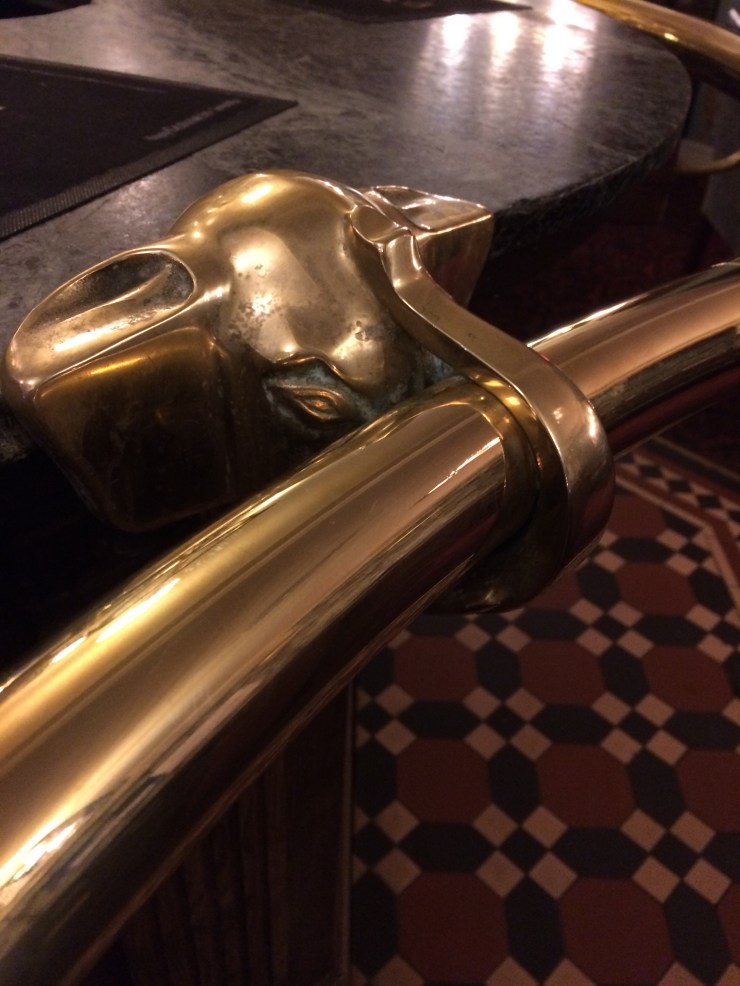 an ornate brass bar…