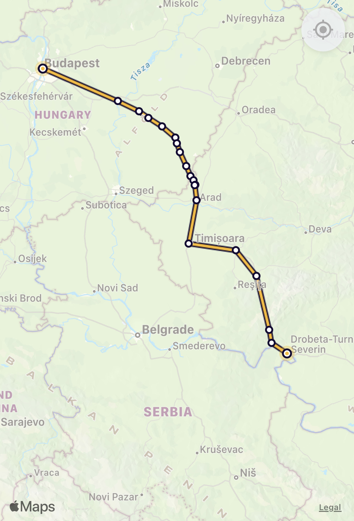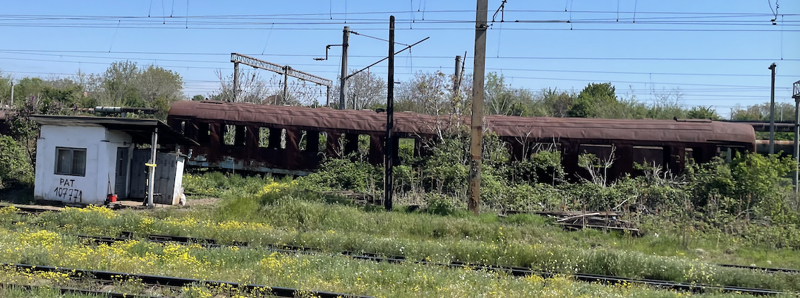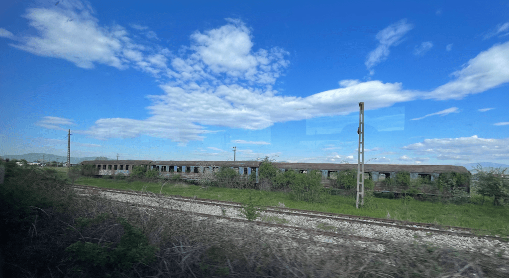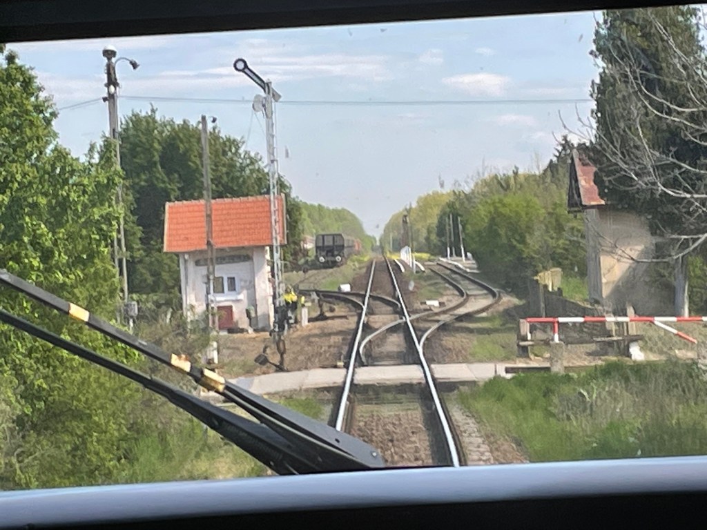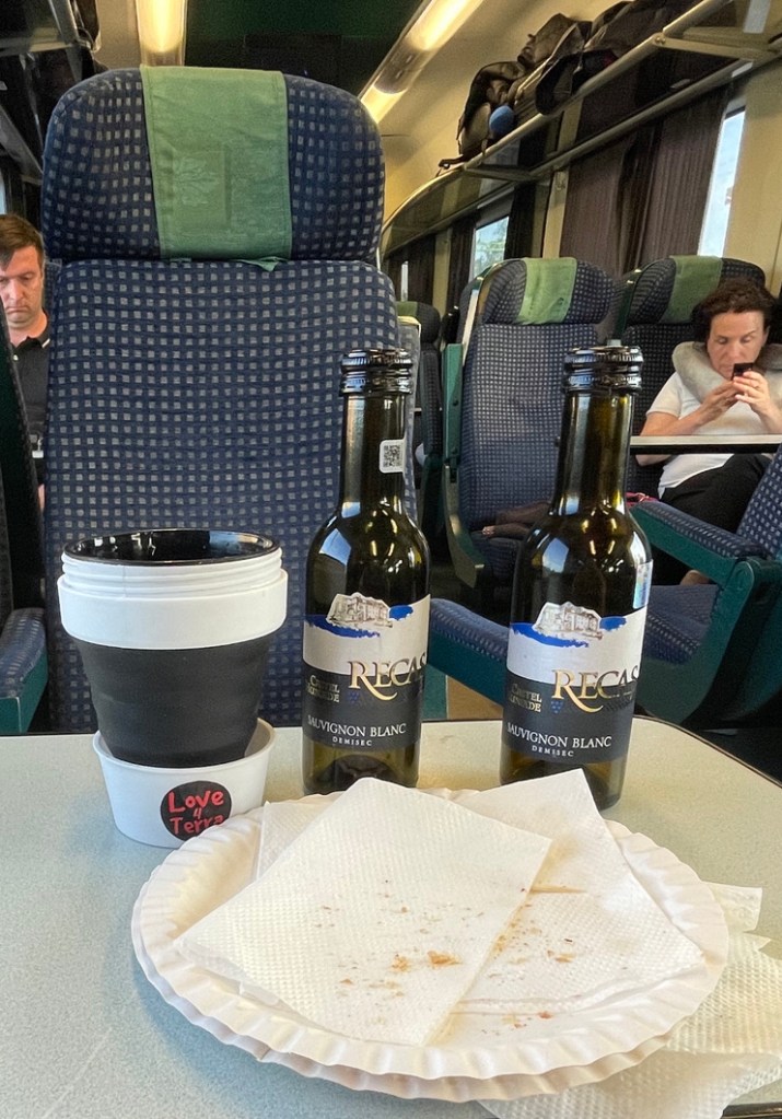 A long day on a train of varying speed, now we are crossing the Great Hungarian Plain. The train is advertised in Hungary as Inter-City with restaurant. Not so! Fortunately the Romanian bar, which has been operating since 05.40 this morning is still ‘alive and kicking’ (it’s now 20.07 EET)… so we have toasted ham and cheese and good Recas wine.