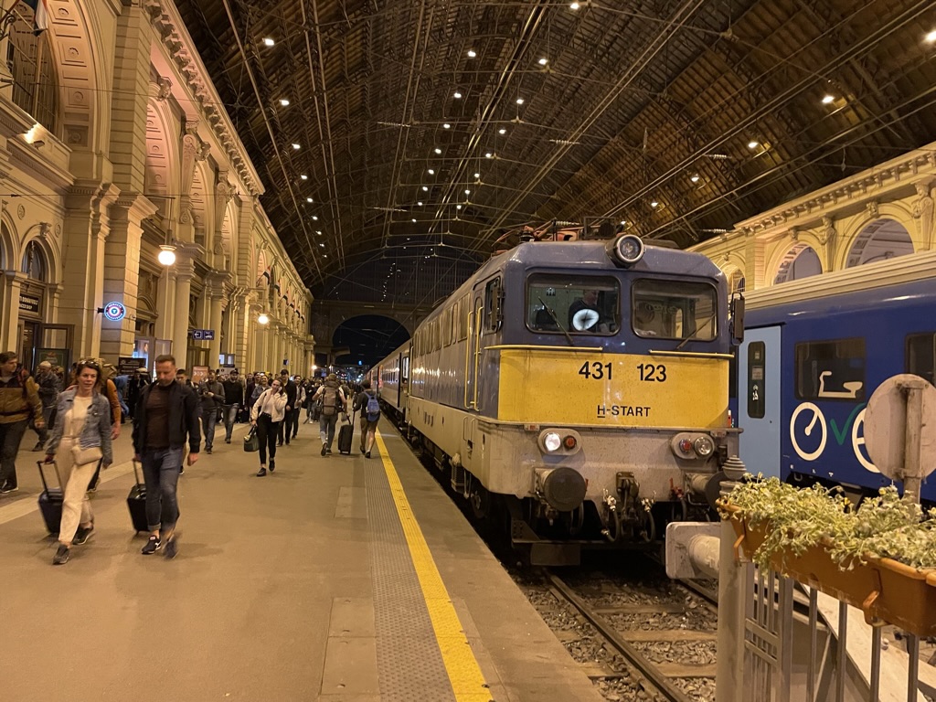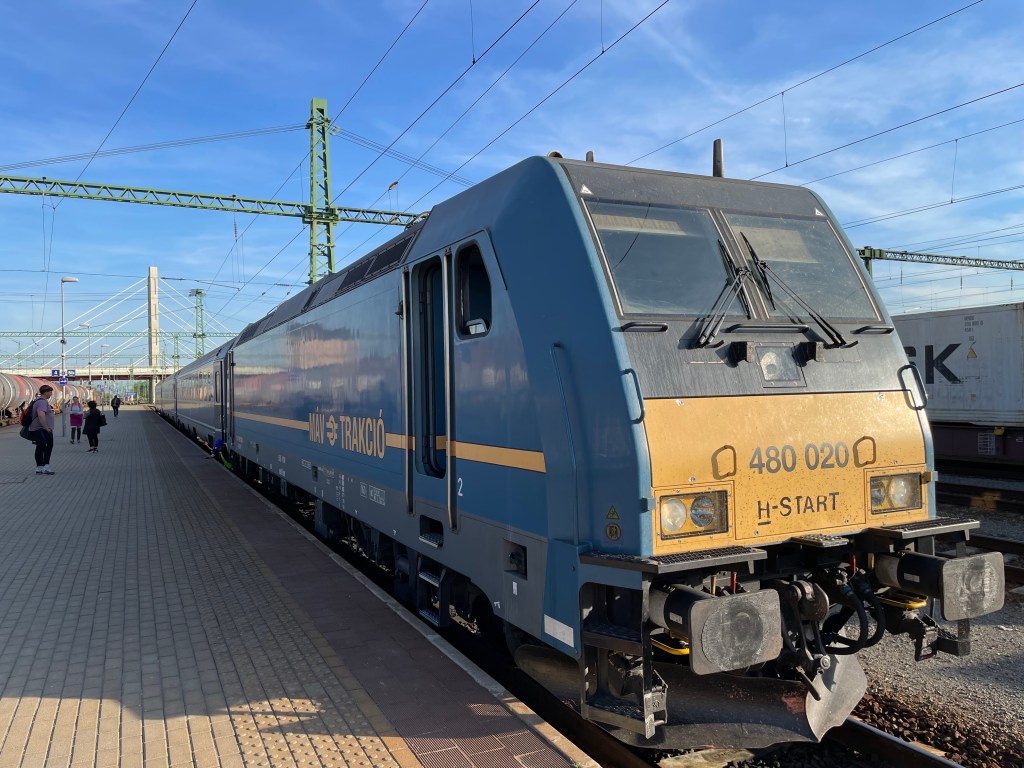 Ever onwards…. and thanks to the Romanian staff we were ‘well fed & watered’. They had been on duty since before 05.30 (EET) in the morning & and continued for the whole journey. Arrival in Budapest was at 20.58 (21.58 EET)