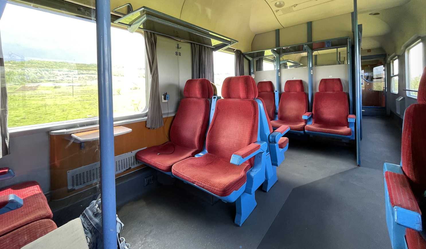 The diesel railcar was from a series built between 1936 – 1942. It is the oldest ‘train’ that is still in full public service that we saw (but renovated ?several times). Maximum speed 70kms pr hr