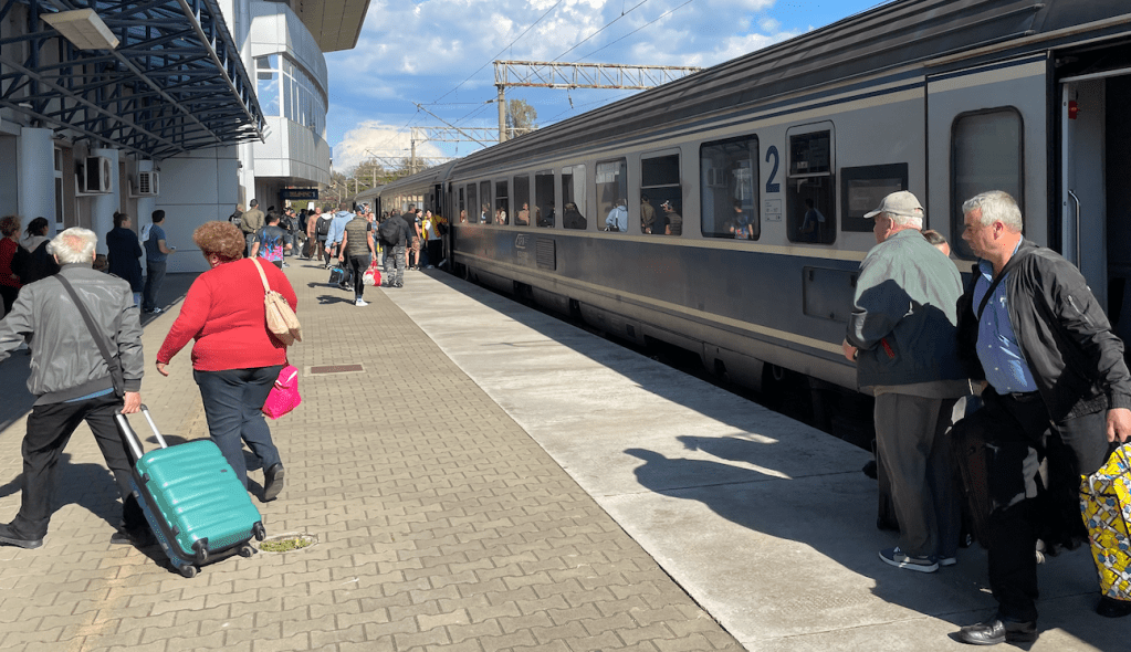 Very busy ‘Fast’ train was behind ours: Bucuresti to Timisoara – thankfully we had been on the stopping train which fed into this at Severin.
