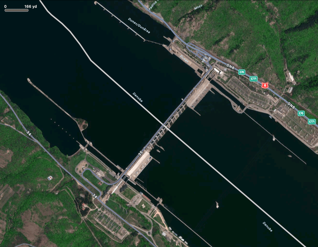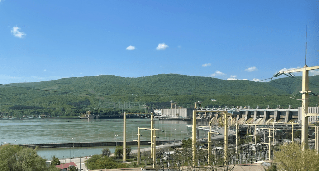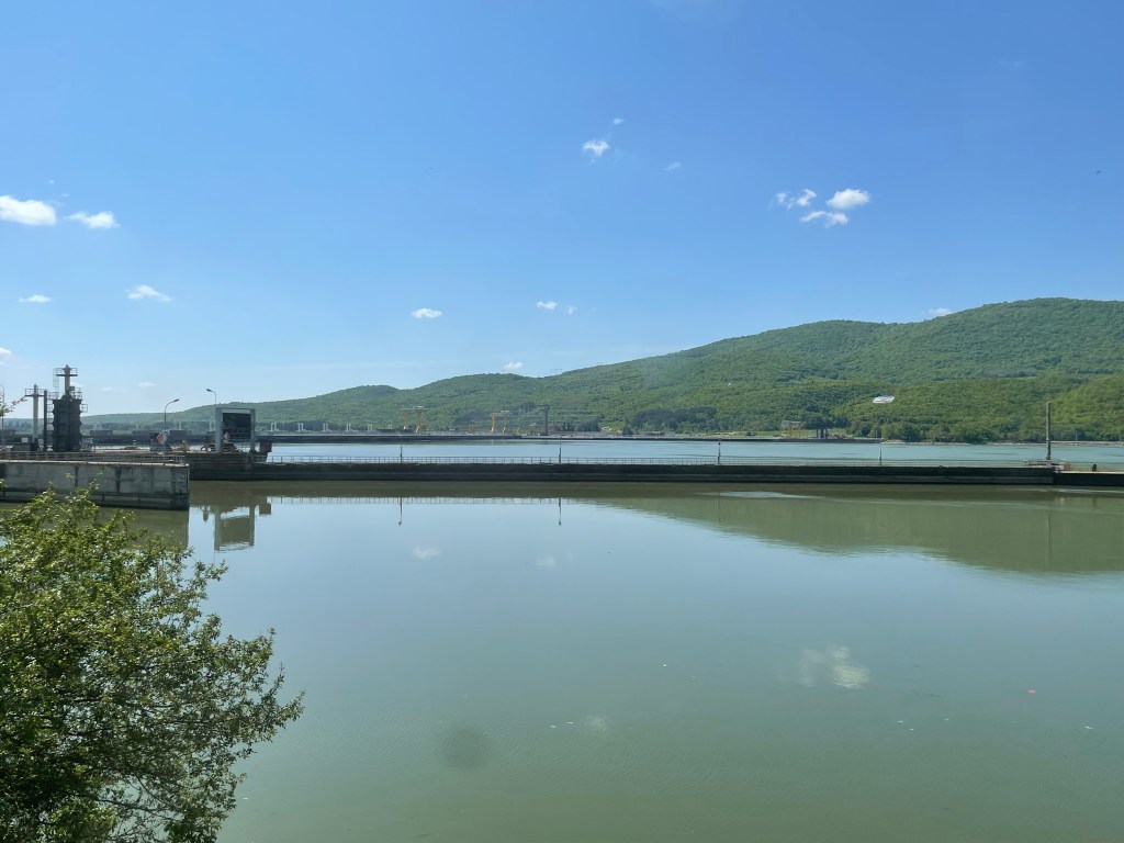 Today, as we left Séverin, we passed by Porțile de Fier. The original rapid water and rocks were drowned (as were villages) by construction in 1970s of a hydro-electric scheme. But they were in my memory from childhood…. Iron Gates on a river sounded very impressive. So today I was able, at last, to see the site…. Very impressive in its own way.