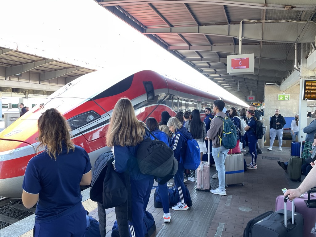 Jacqui and I have become teachers again…. We are surrounded by secondary school kids on a trip! Jacqui has already assisted in teaching some how to open interconnecting doors and directing them to the nearest loo.