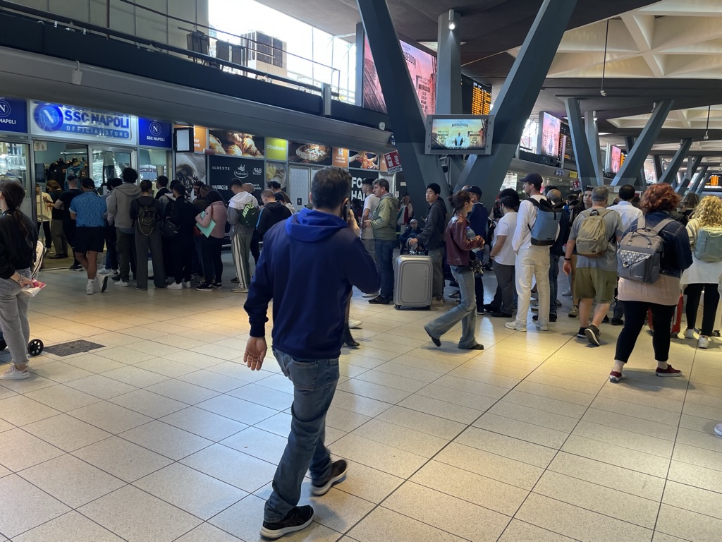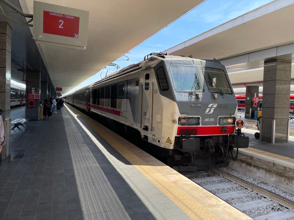 A traveller is delayed unexpectedly, by technical difficulties’ outside Firenze S. M. N station, with an expected delay of at least 30 minutes before arrival.