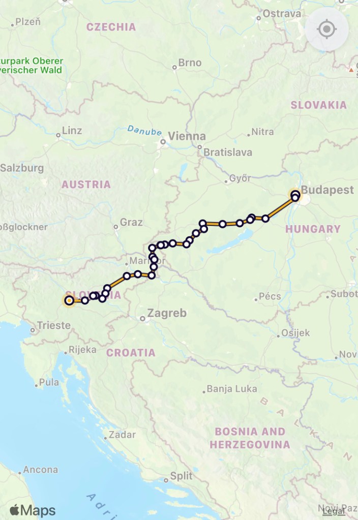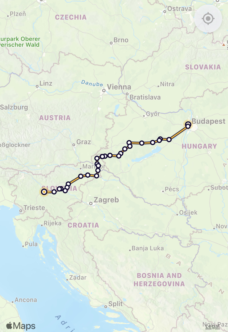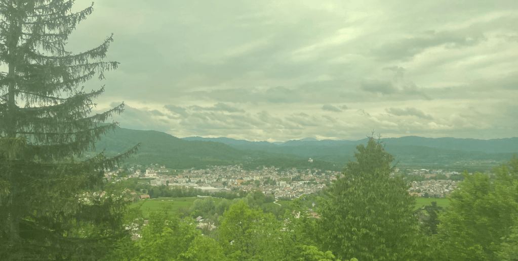 As we moved through Slovenia the weather became wet – with constant low cloud. We hardly noticed as early on 3 young sisters, all fluent English speakers, joined our compartment. The journey then simply became conversational – hearing their family history, stories and intentions.