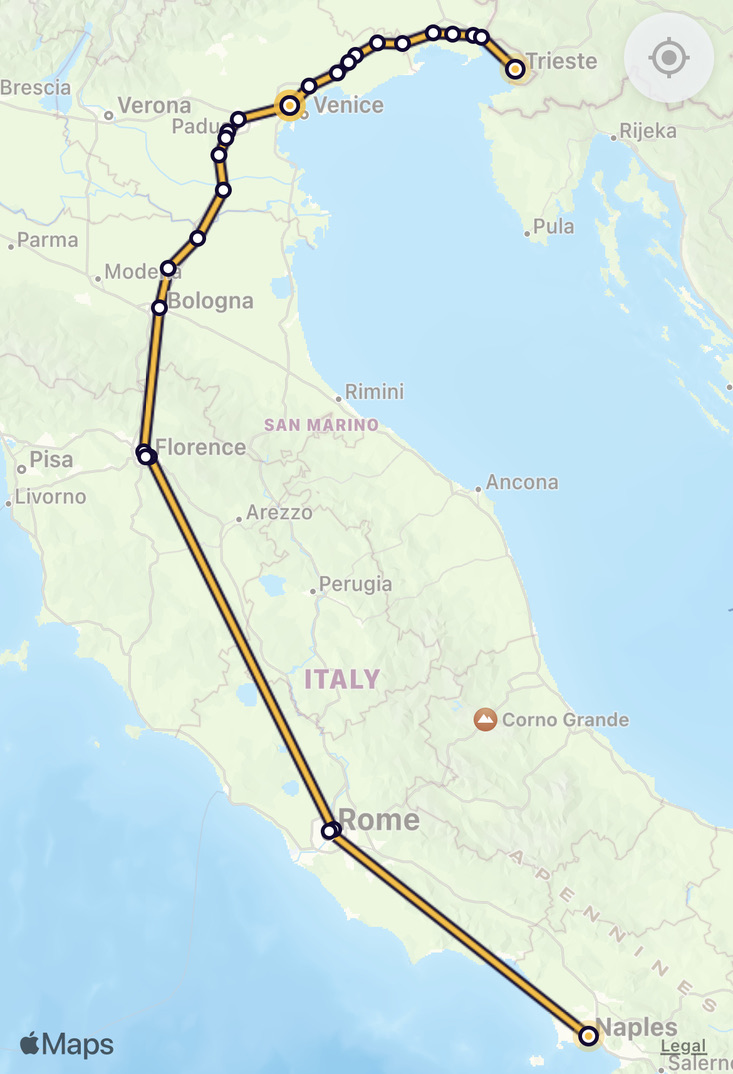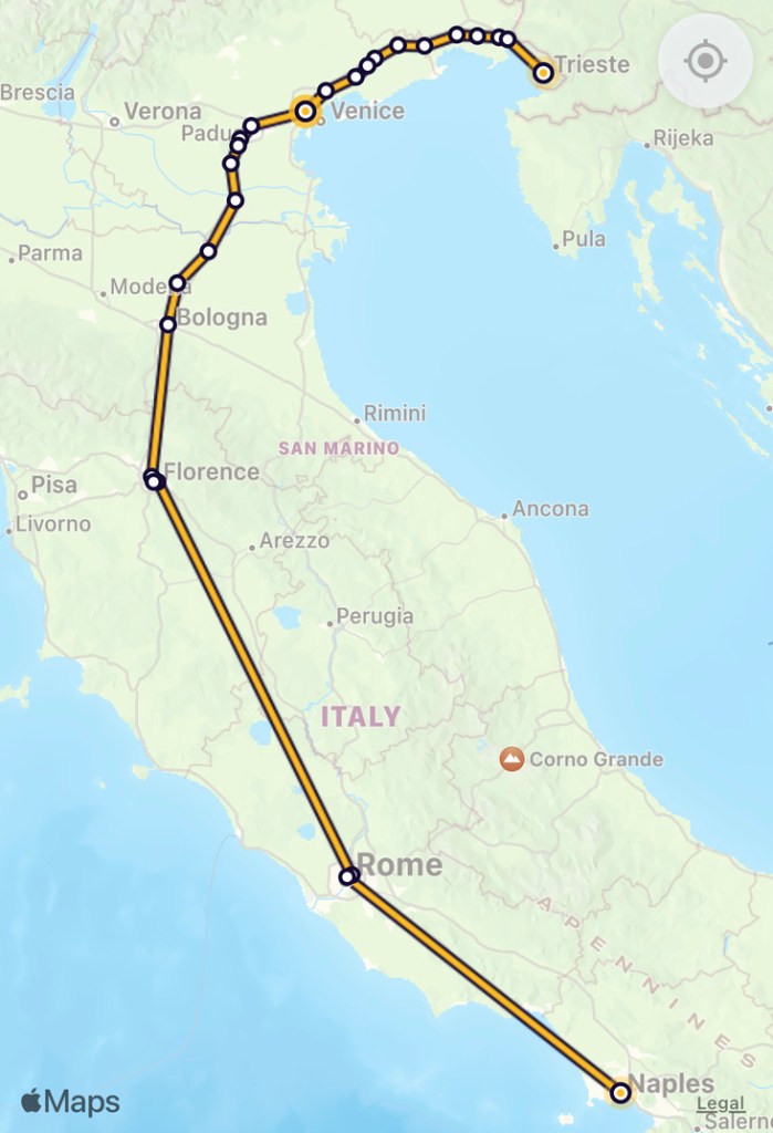 We are late, very late, but we roar into Tuscany and the edge of Umbria. Some in this group may remember ‘83… and a visit during which one son began to walk on the steps outside Orvieto Cathedral. This fast line ((Bologna to Napoli) has been 40 years in development (more, including planning)….. a real triumph of Italian coordinated determination.