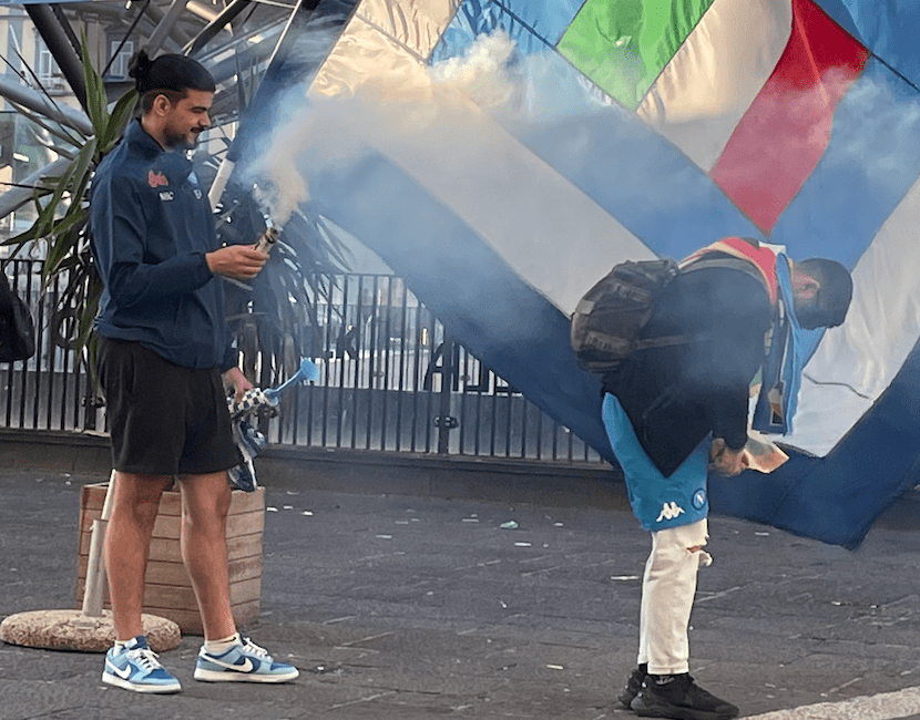 The football brings it all together… both on and off the pitch….. and Napoli at its loudest. Once the championship was secured the explosions began…. A Thunderous cannonade that lasted over an hour…. And occurred at times during the night and earlier this morning.The atmosphere was always positive….. even when the team was a goal down.