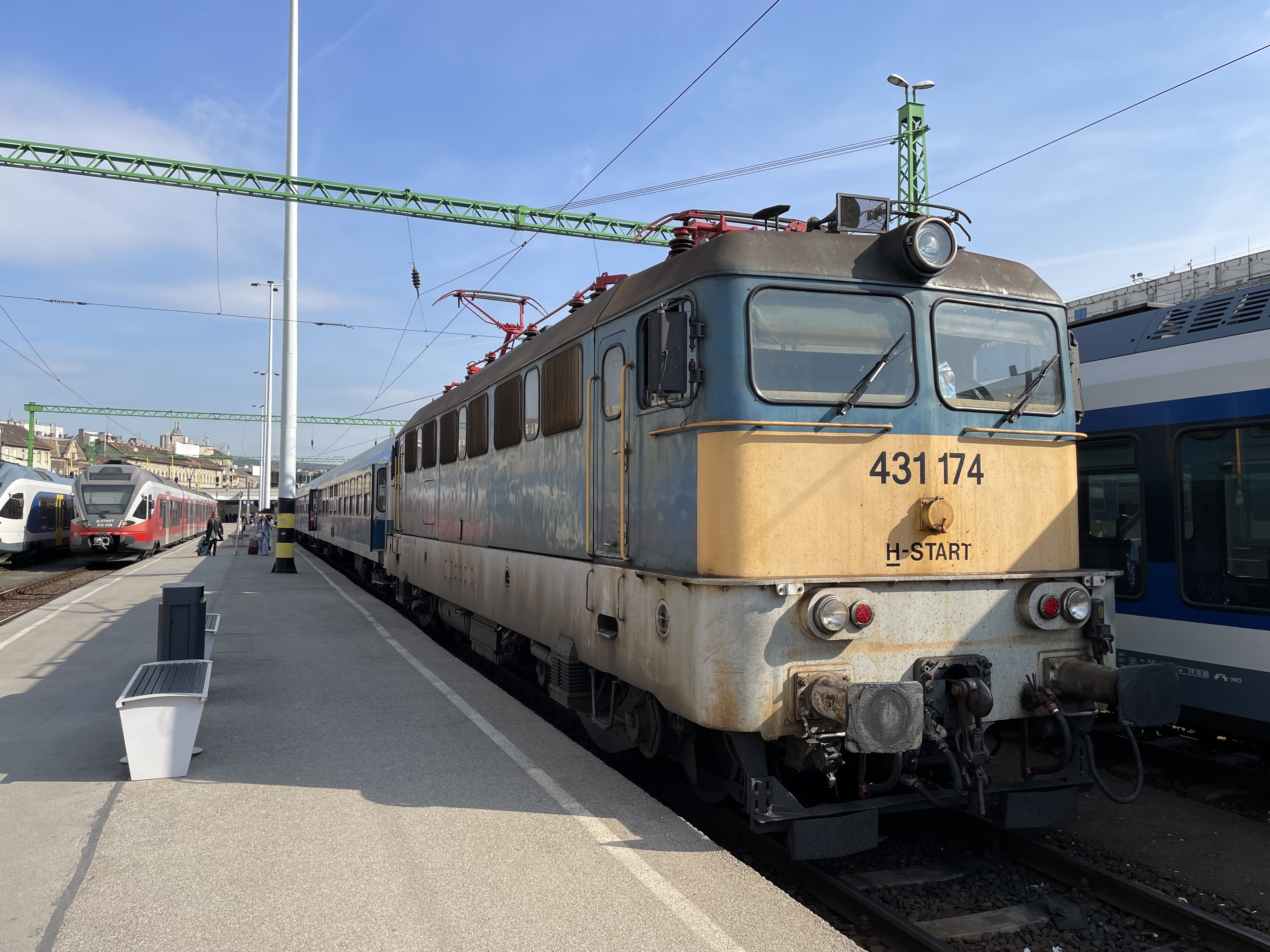 At seat service…. Yesterday….. today, a train as old as the engine …. But cleaner….. this is an International Inter City train! The local Hungarian internal expresses are considerably better