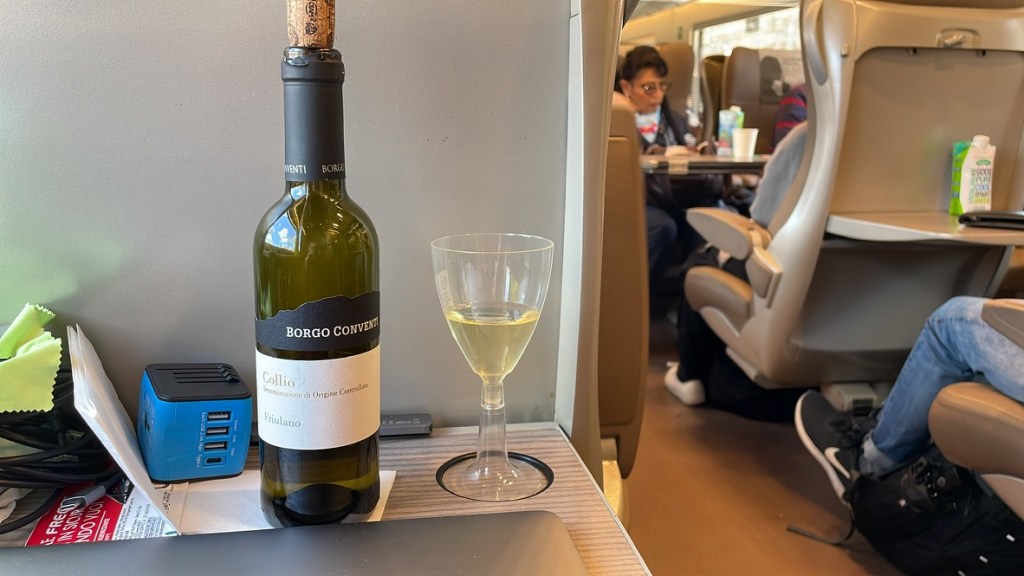 advance swiftly to the bar (ensuring one is in advance of other passengers) and purchase a bottle of fine Friulano wine. Drink contents slowly.