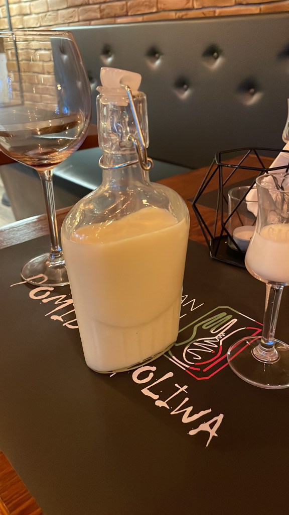 Lovely food – and our appreciation resulted in a gift of specially made Limoncello