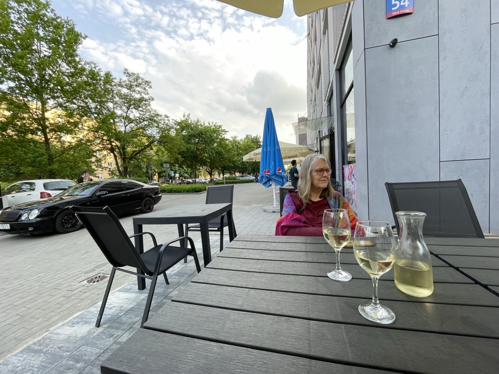 For the first time on this tour we have warmth and can sit outside to eat……the temperature went from c9 degrees [Bielsko-Biała] to 25…. And the cold wind became warm.