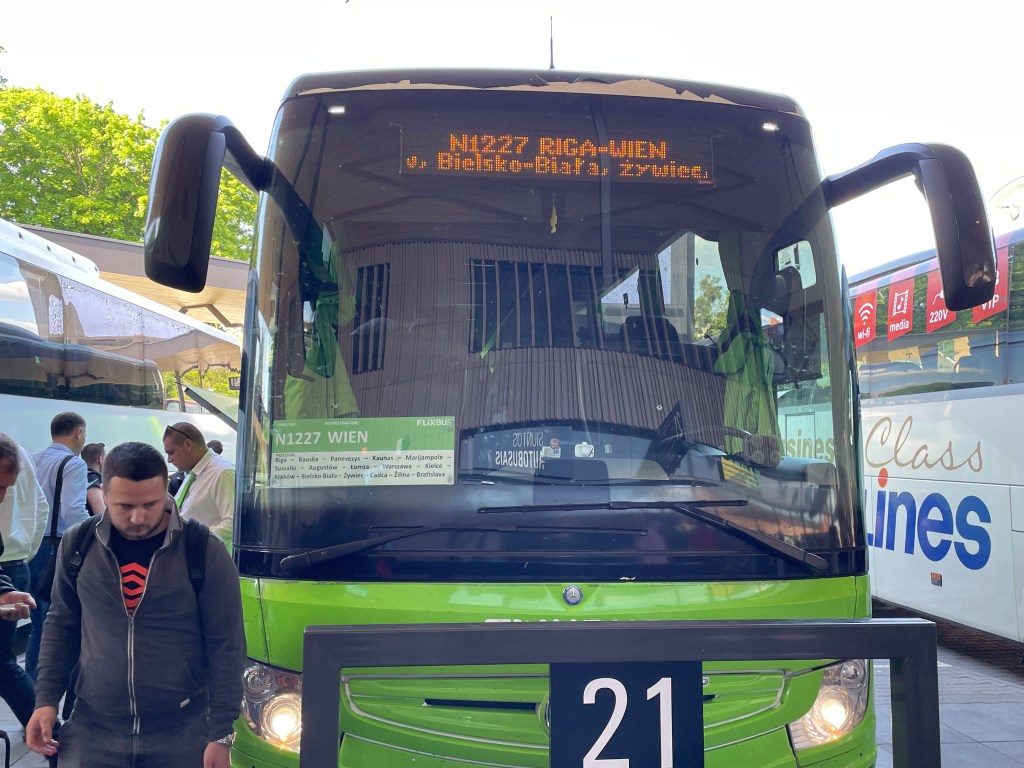 … note an overnight bus travelling back, along our route, to Wien……