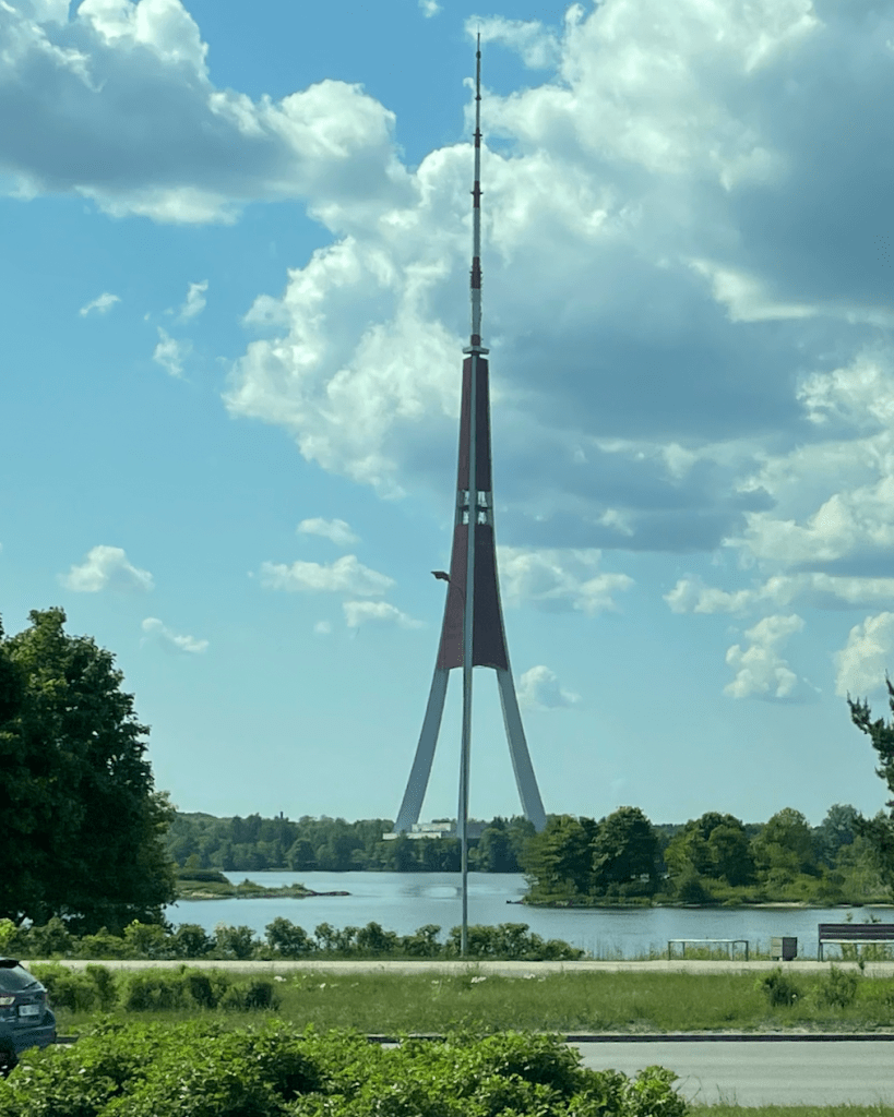Into Riga… passing the Soviet era Radio Tower (still used) 368.5 metres high (3rd highest tower in Europe)