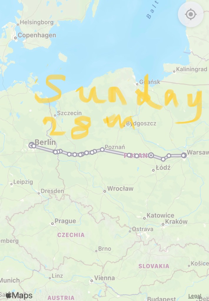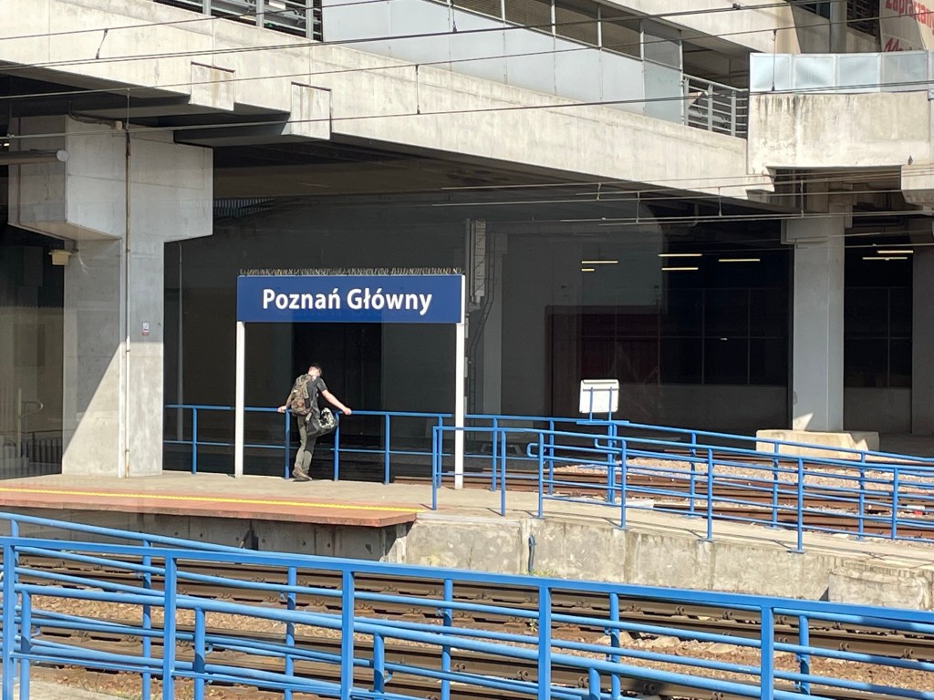 We wave to Poznań as we stop briefly – its unusual not to be leaving/joining the train here as we’ve had many visits and activities based there.