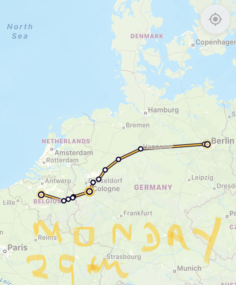 we left Berlin over an hour late – close to the original time scheduled…. but there was a reason for the intended early departure & it had not changed