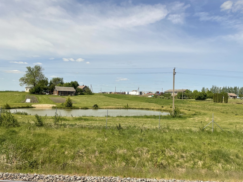At Bialystok the train becomes diesel hauled and though the line speed is slow there is evidence of the beginnings of surveys that will produce a faster route into Lithuania. Also at Bialystok we met 3 guys from Scotland (Galashiels & Edinburgh) travelling to a concert in Vilnius….. Yes, that one!