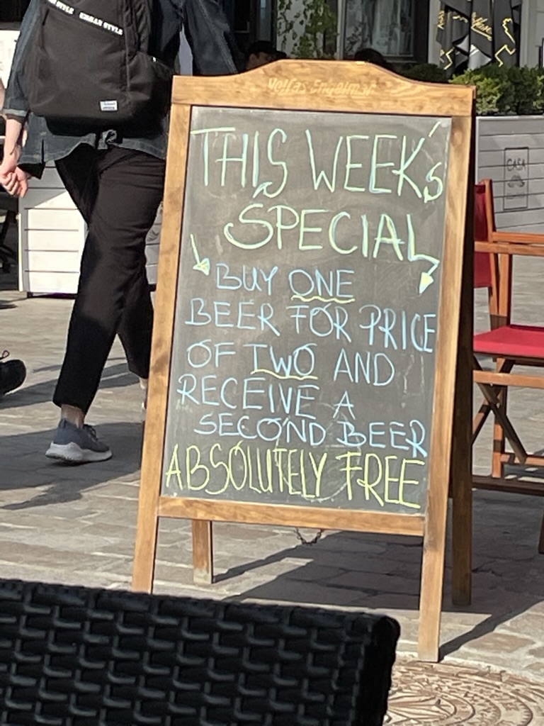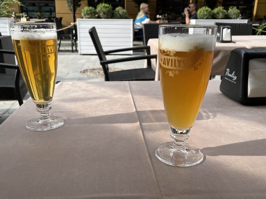 I then whizzed down to the bar – and the member of staff who had been in the process of serving me beers when we had to leave our first train was still present – and had my beer ready! I ordered more and carried them… insisting that (given the circumstances) serving us in the compartment was unnecessary (there was a queue) … she seemed pretty grateful.