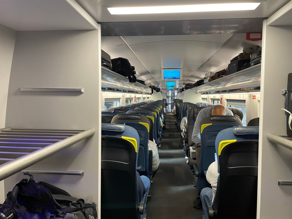 As we were ambling past the Eurostar entrance – with time to spare before we need to check-in, fortunately Jacqui saw a notice about cancellation of our train…. and therefore, a possible transfer to the earlier service. We were just in time.