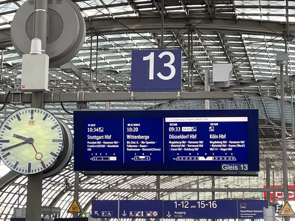 Now due to leave at 10.18 (instead of 09.33) The platform staff have no idea where the train is…. They have examined the electronic track diagrams and cannot find it! I suggested that it was now a ghost train…. They laughed and agreed! The original schedule for train ICE 650 had stated it was leaving at 10.42….. maybe the whole system is screwed up.