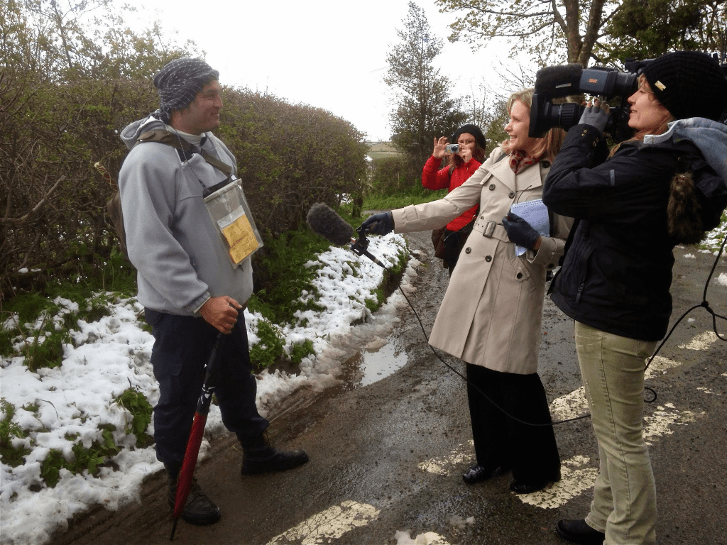 May 2013: Some people seem to pull-in events around themselves & in the Green Line Workshop Uldis became a focus for a BBC News film crew who were recording an unexpected fall of snow on the hills of the Welsh Border.
