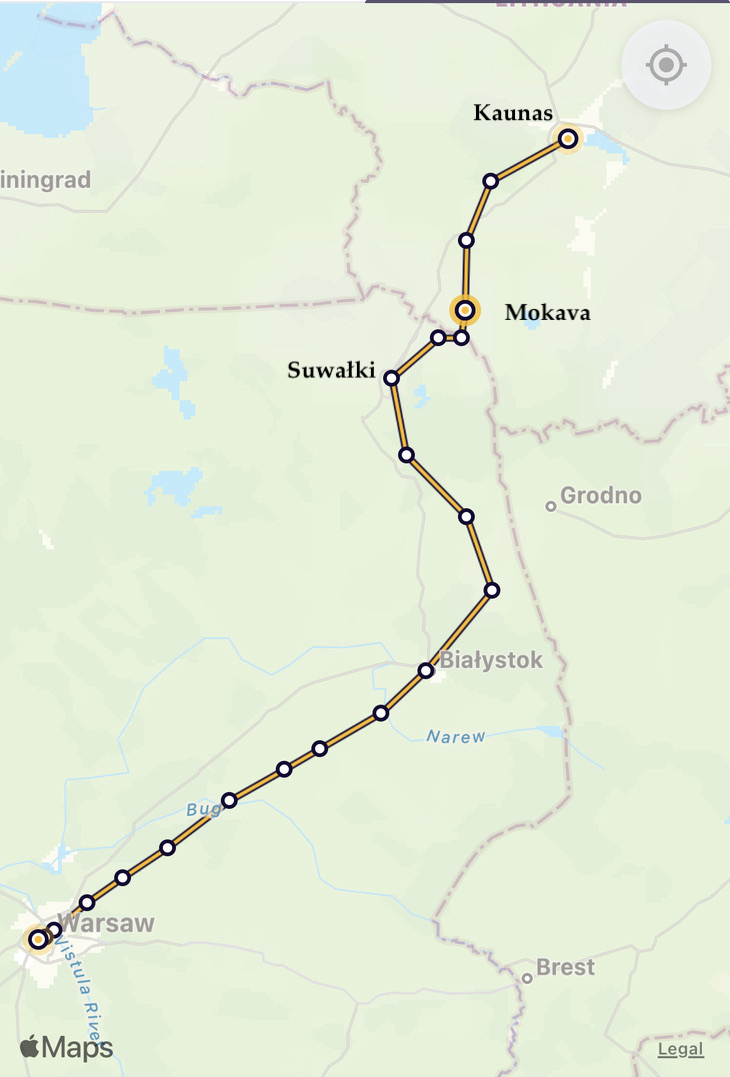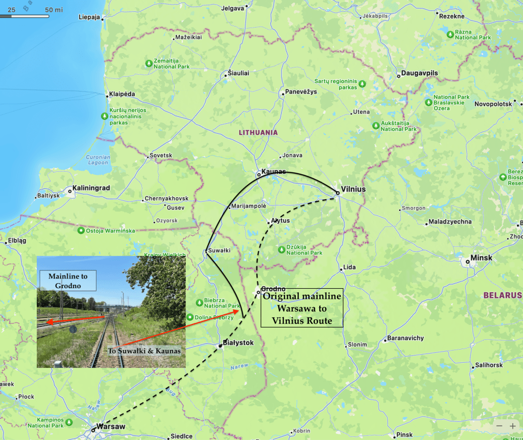 Our train branches away from the mainline to Vilnius – but that line passes through corner of Belarus & is no longer used.