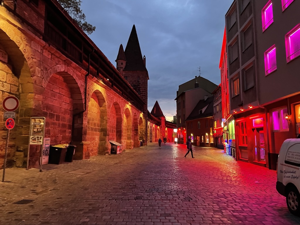 And the red lighting continued for some distance…. With, to Jacqui’s initial surprise, a very particular trade being ‘displayed’ in window after window.!…… welcome to the ancient city of Nurnberg.