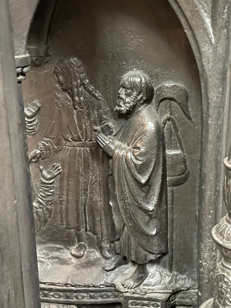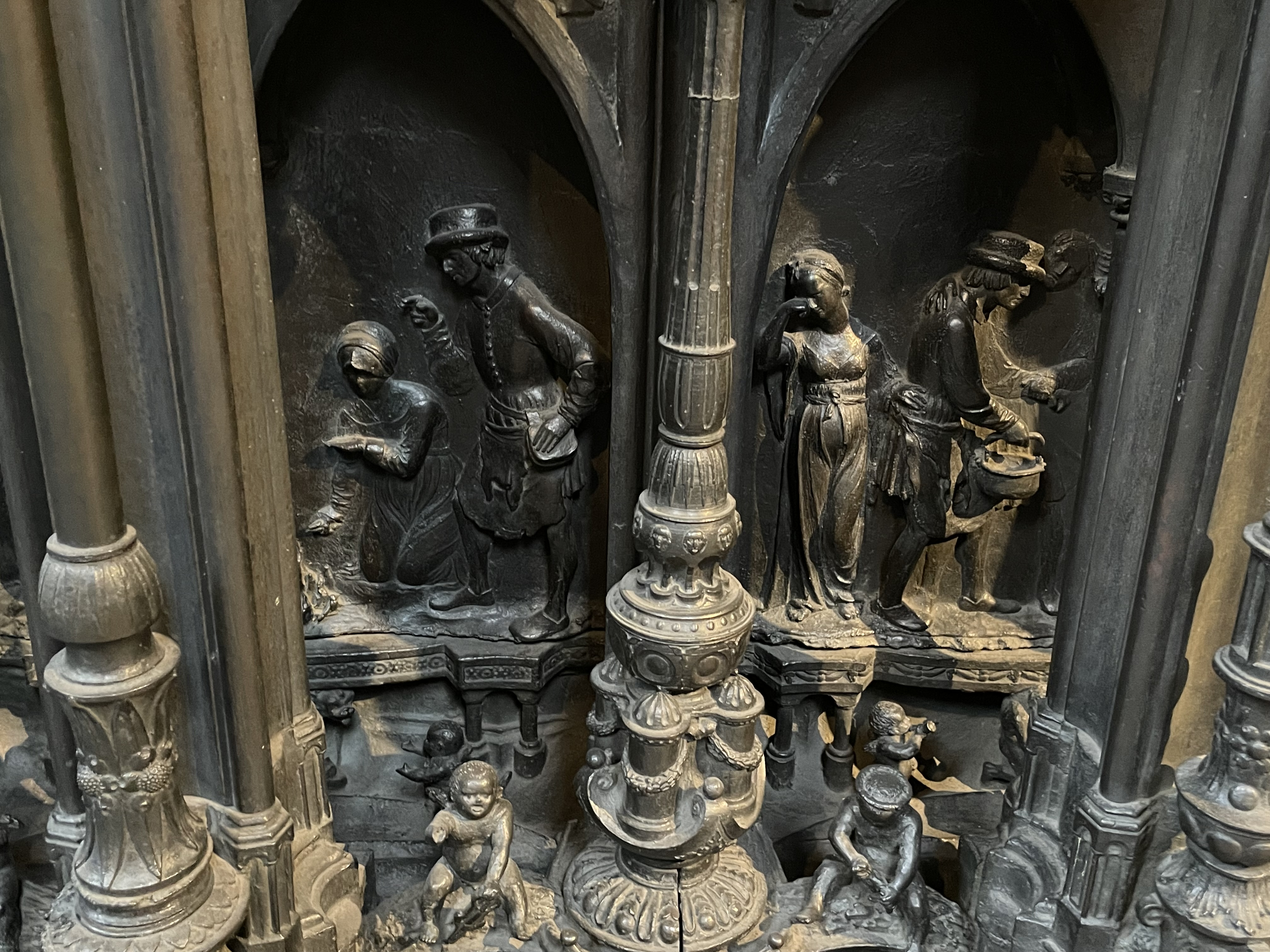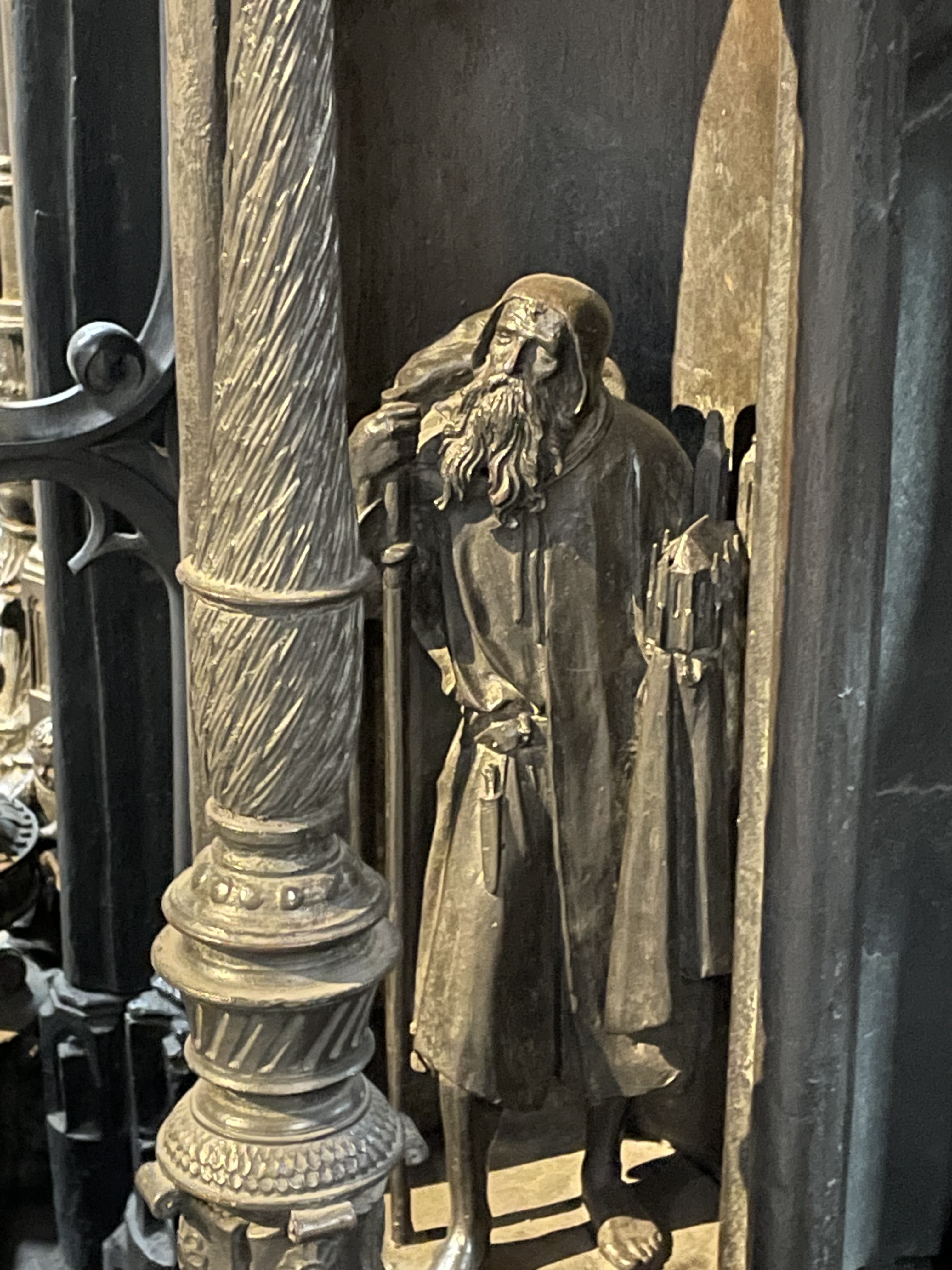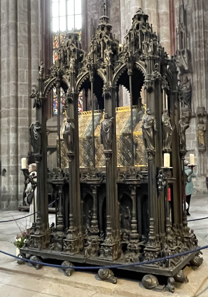 St Sebald may have been an itinerant Anglo-Saxon who lived as a hermit in the forests near Nürnberg. His relics are contained in the casket held within the shrine.