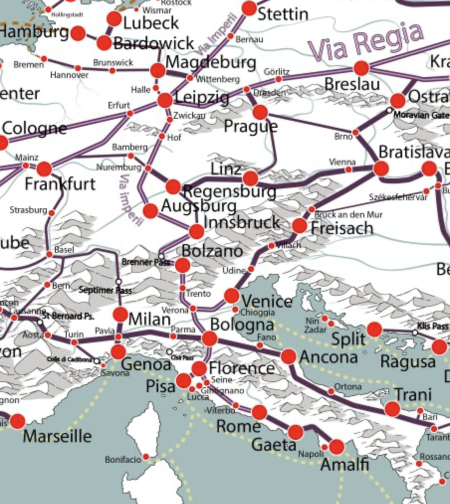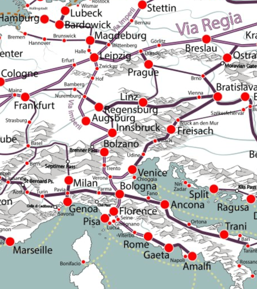 The link with Prague was sufficiently important for there to be a named Imperial road connecting them: The Via Carolina.