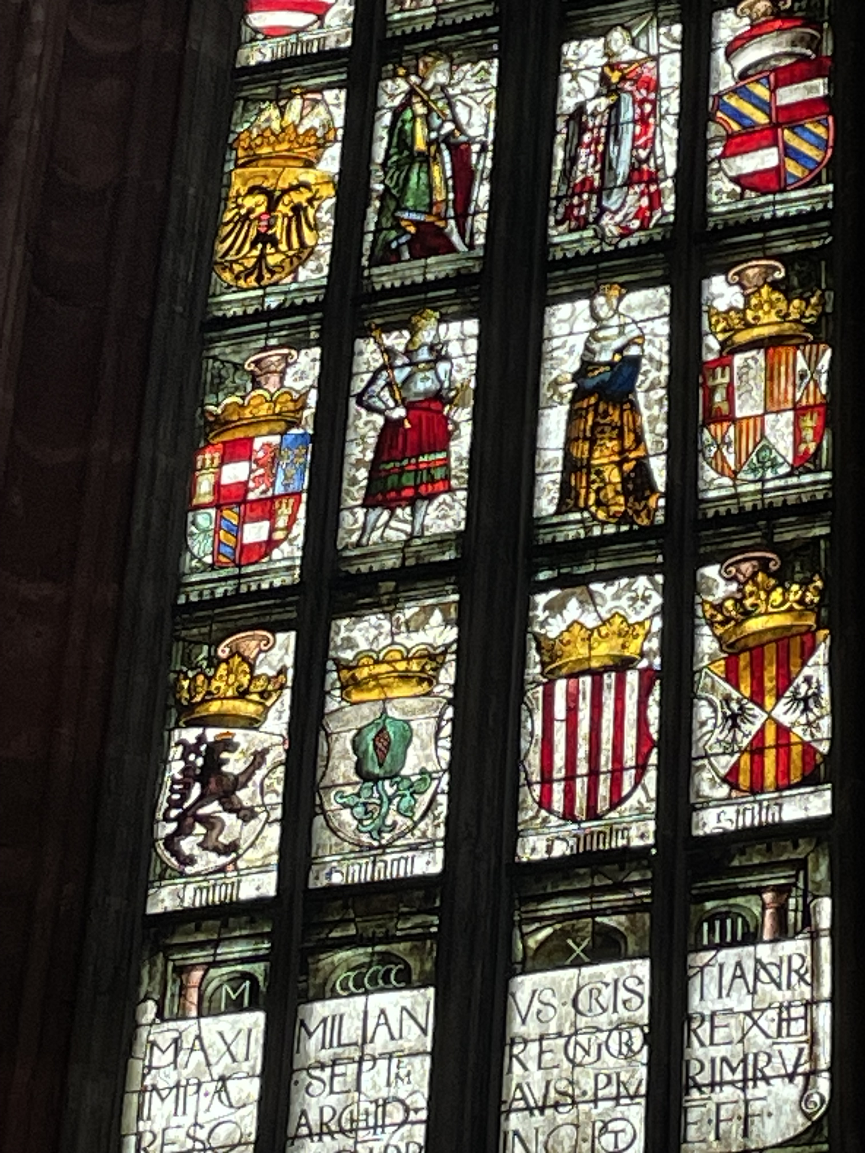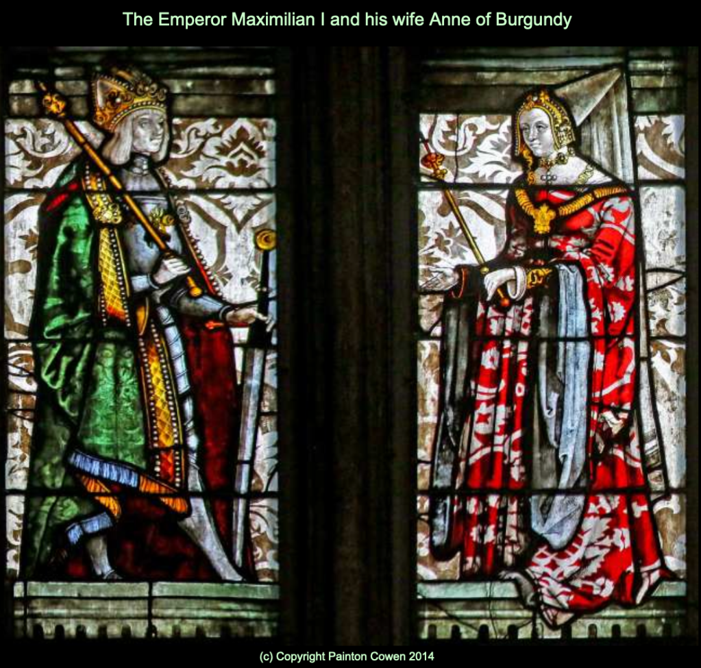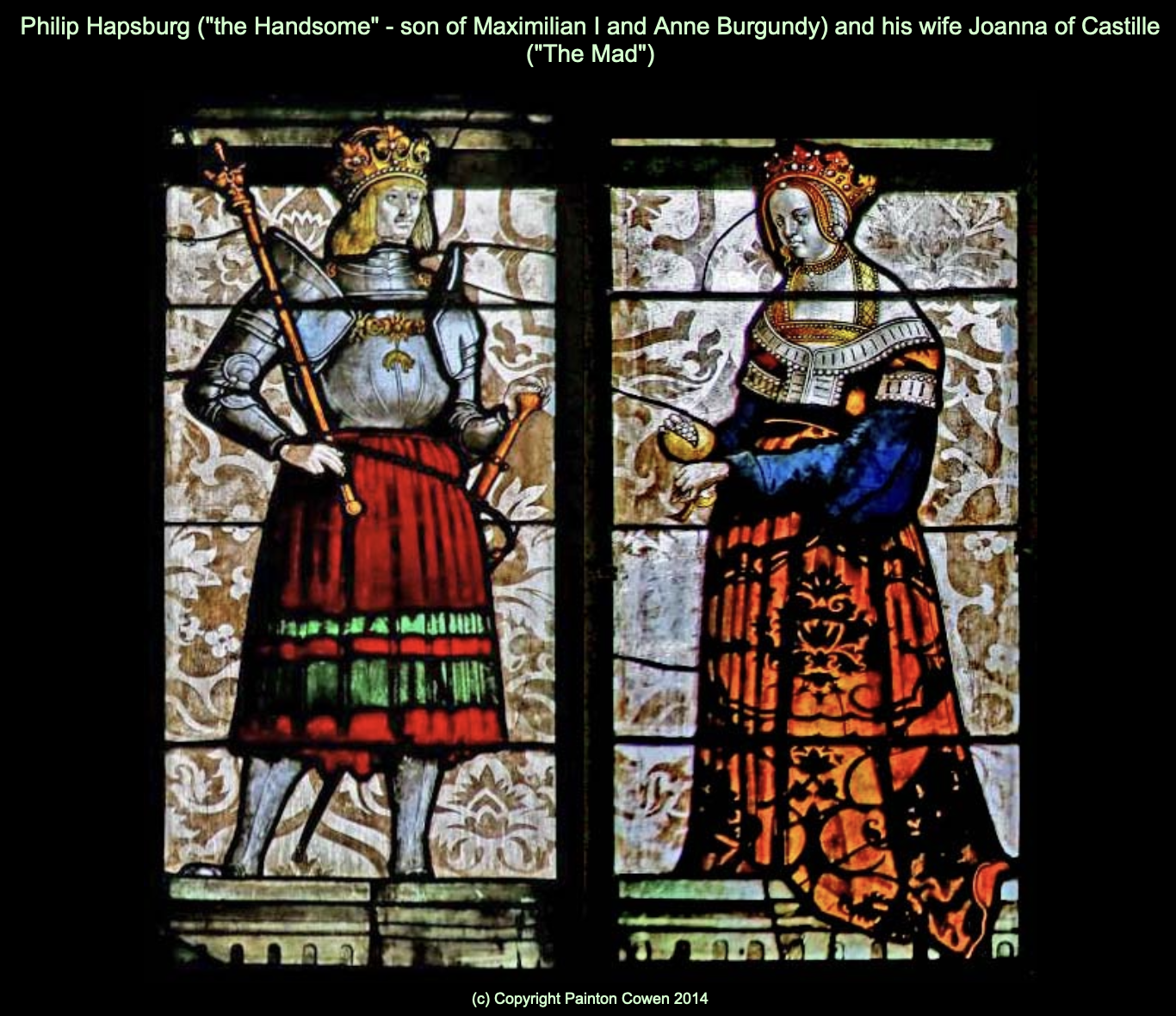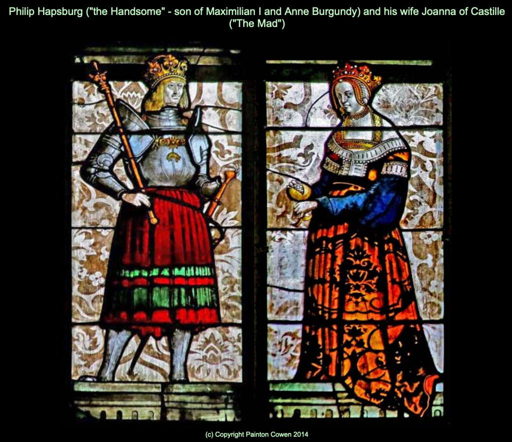 Philip (son of Max & Mary) & Joanna: The other marriage in the window, resulted (eventually) in Philip becoming ruler of Spain (for just over 2 months before his death in 1506).