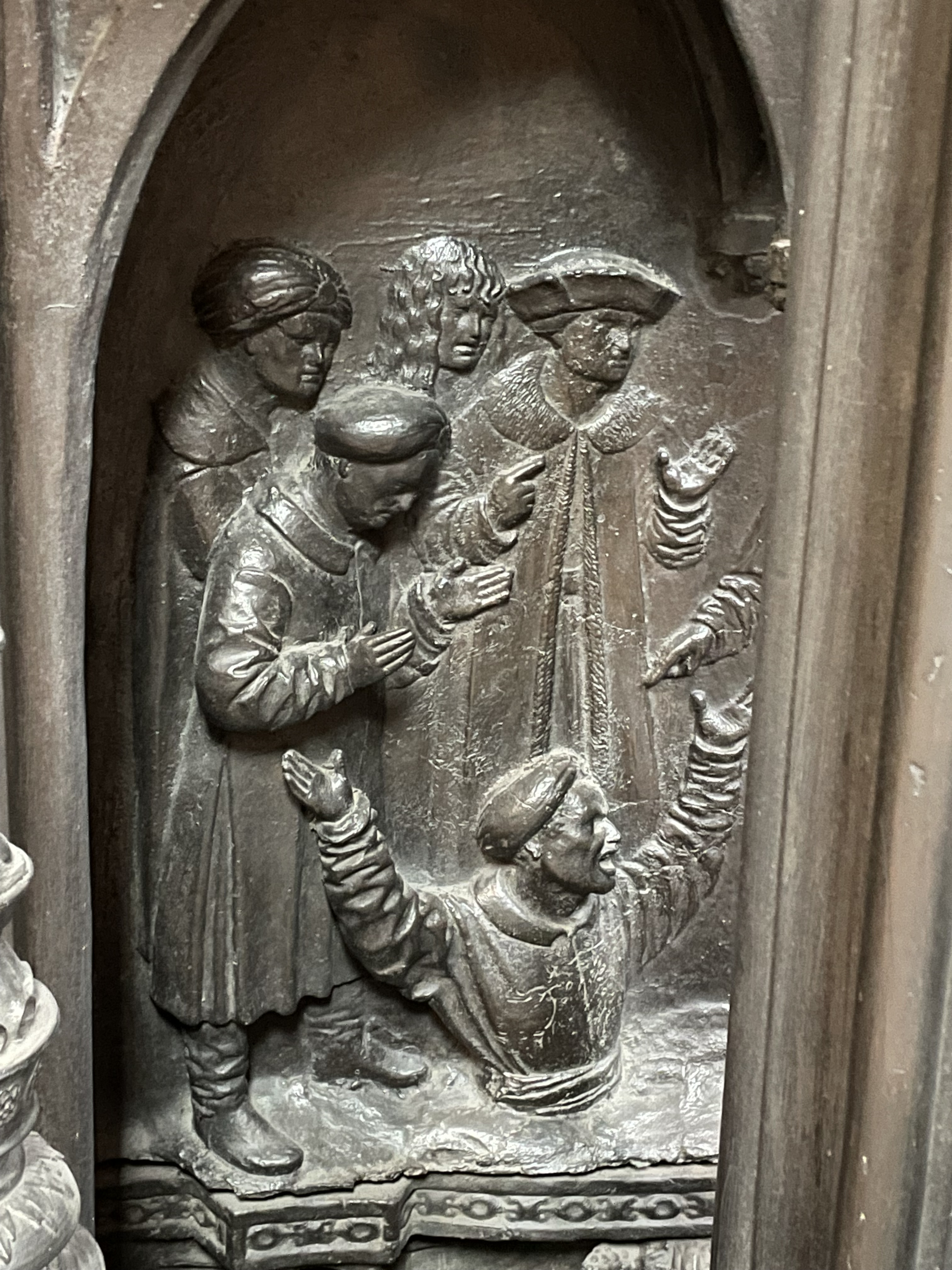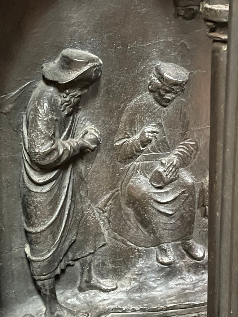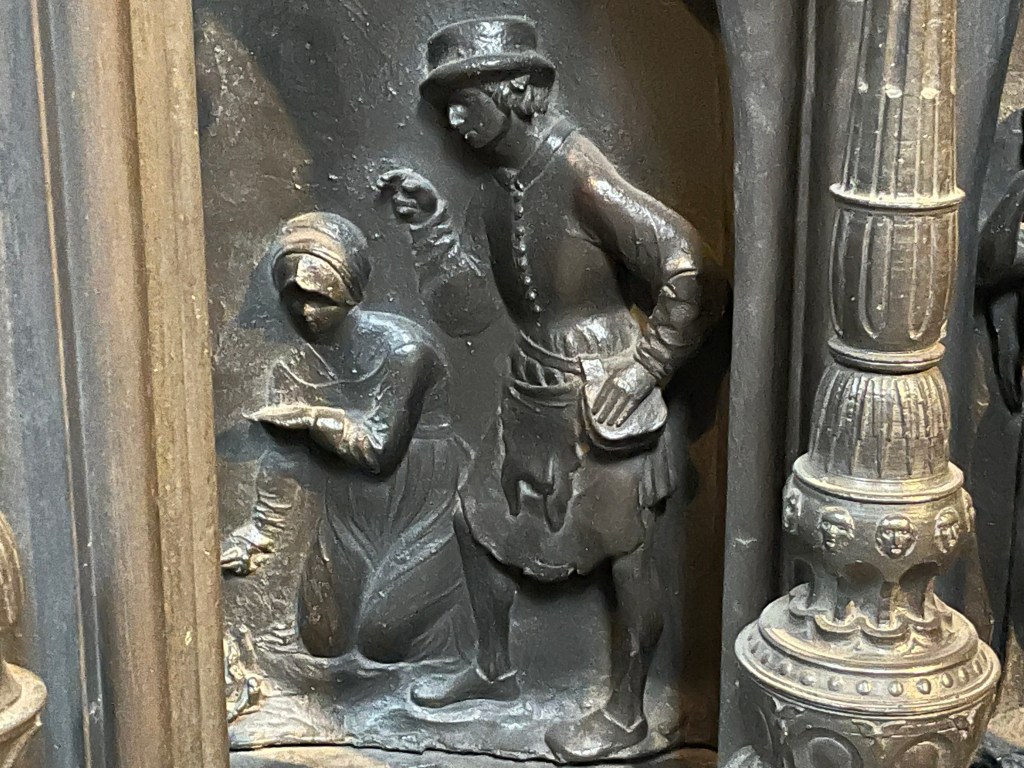 It took some time to work out what was happening. Once I realised I then appreciated the clever way the sculptor had managed the story.