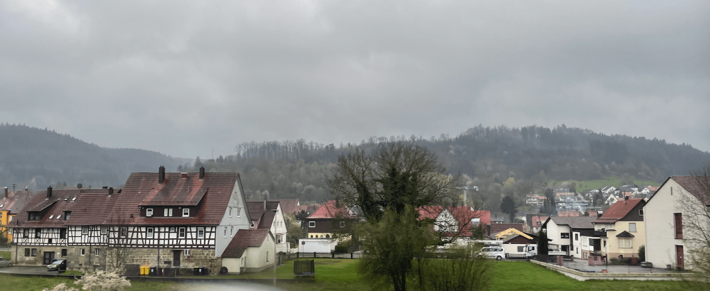 The rain, intermittent yesterday, has been a feature since Poland. This morning, once again, it locked itself in on us and remained until we reached the Rhine.