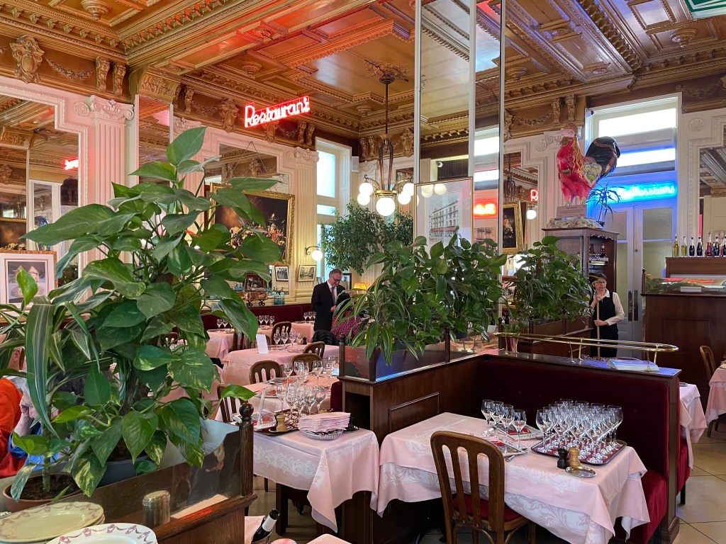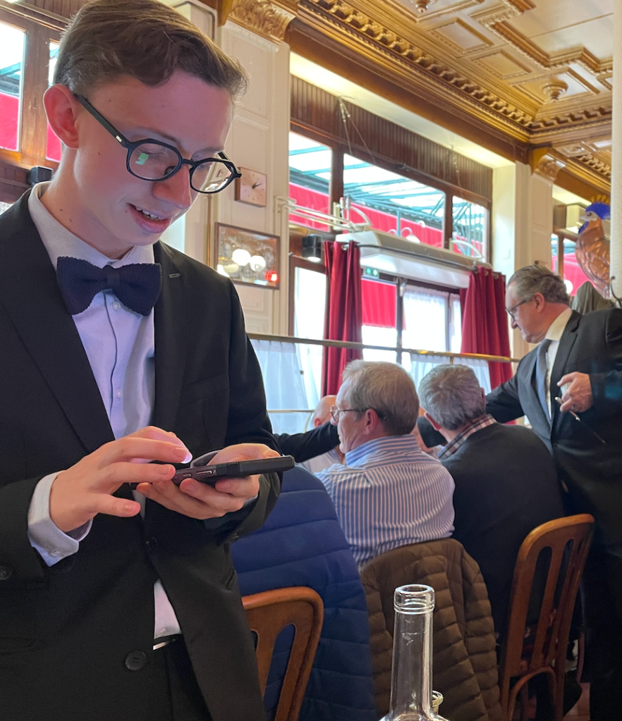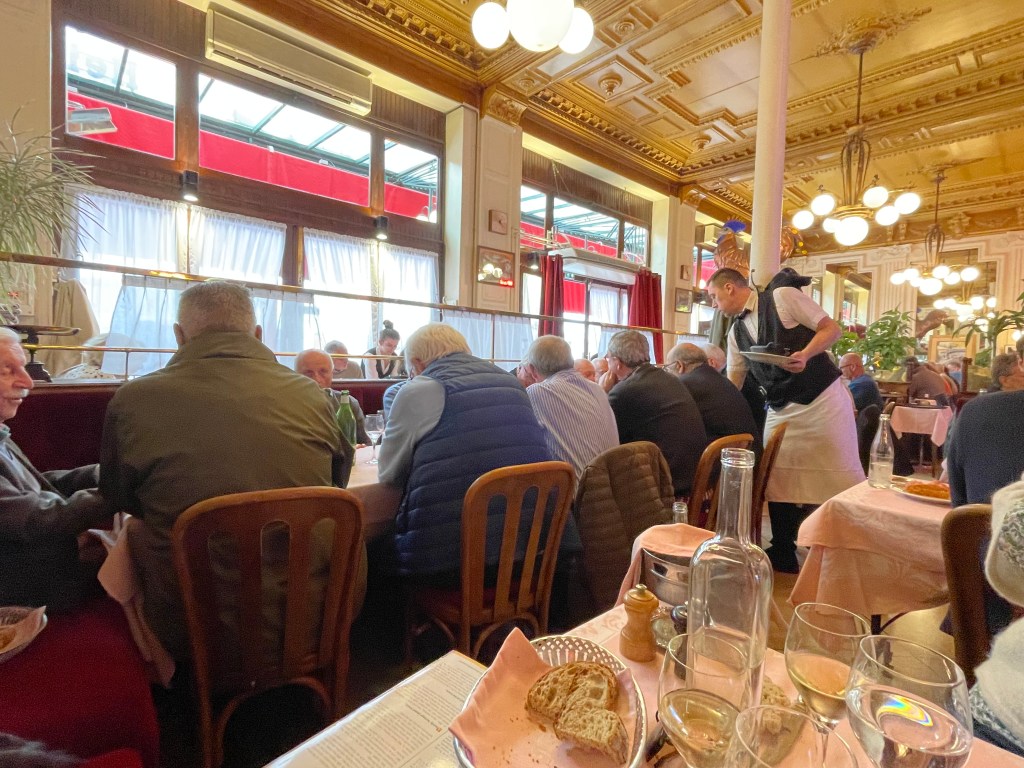 Pat was clearly a regular visitor being greeted as such – with a wonderful set of warm traditional formalities (that managed to feel informal) ‘Bonjour Madame’… etc, after which we were conducted to our (specially positioned) table – being greeted by staff en route.