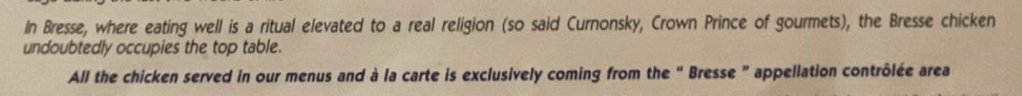 ‘Bresse is noted for the 1,200,000 chickens per year which are raised primarily outdoors by 330 stockbreeders, with a minimum of 10 square metres per bird.’