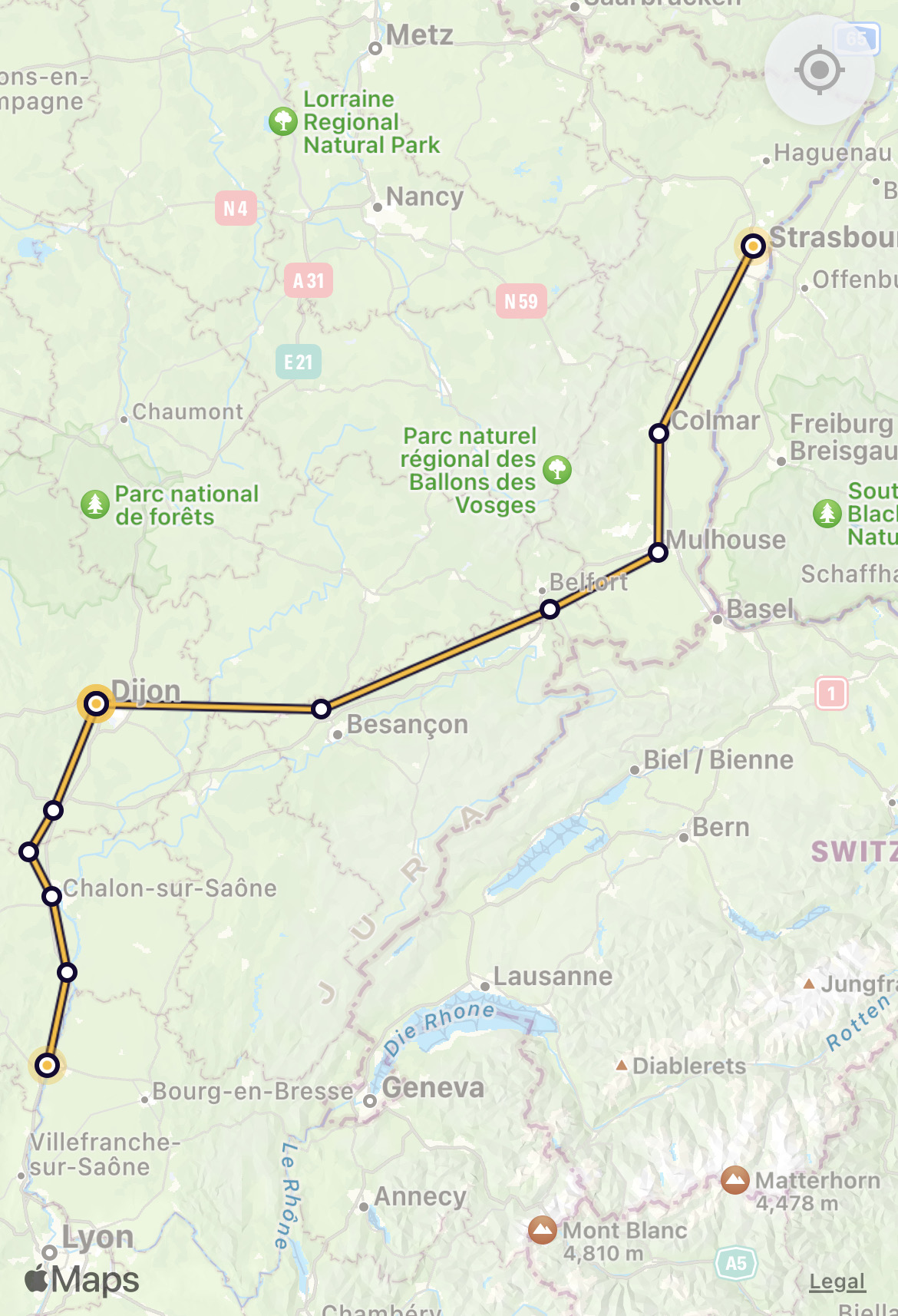 Regional express to Macon – it’s Sunday – so (as everywhere else on Sunday afternoon) it’s very full. The photo gives a clear sense of the poorly cleaned windows – we were beginning to expect that on a French train.