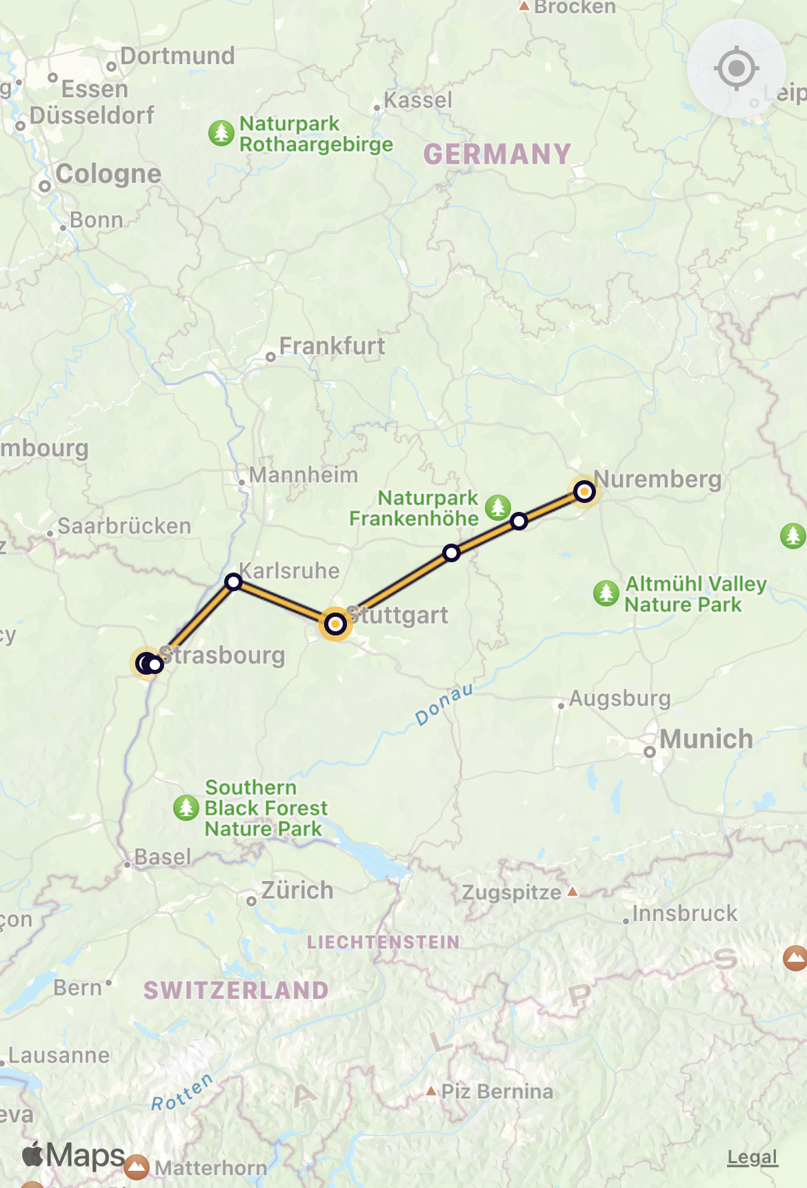 Early lunch on ICE train to Strasbourg (following rather chaotic change at Stuggart caused by very late arrival of another train)