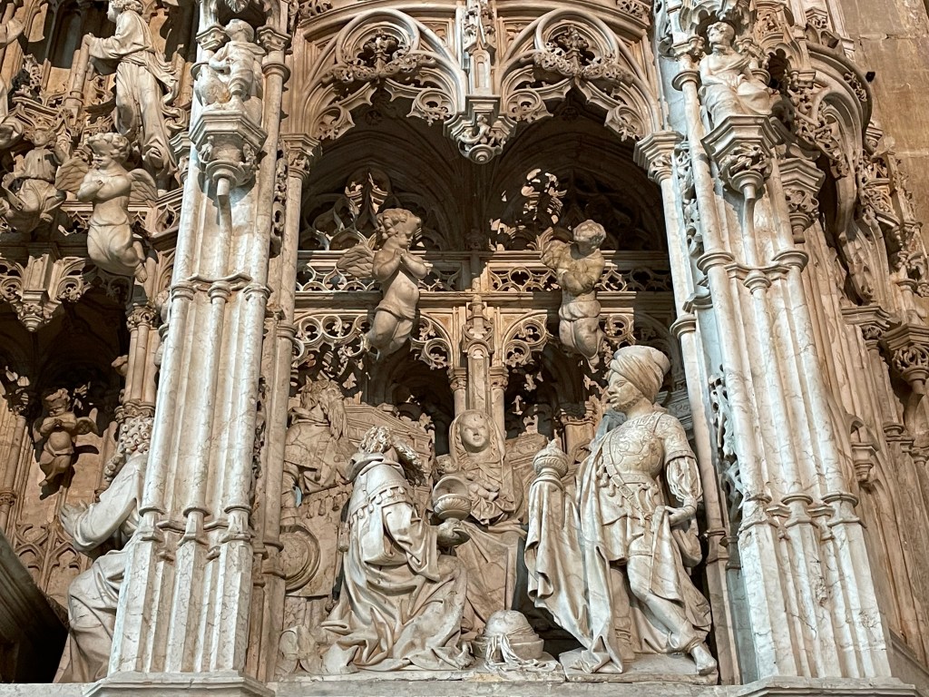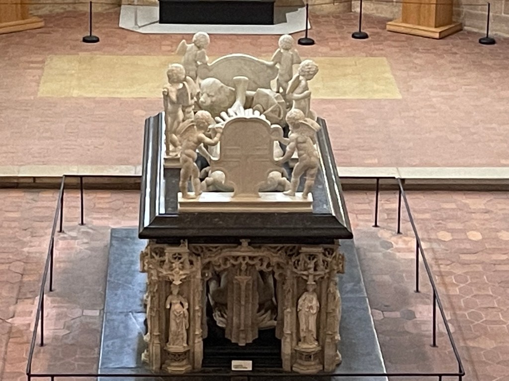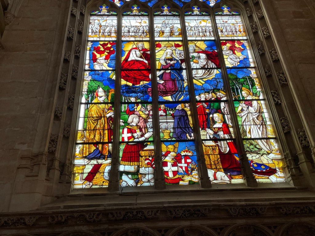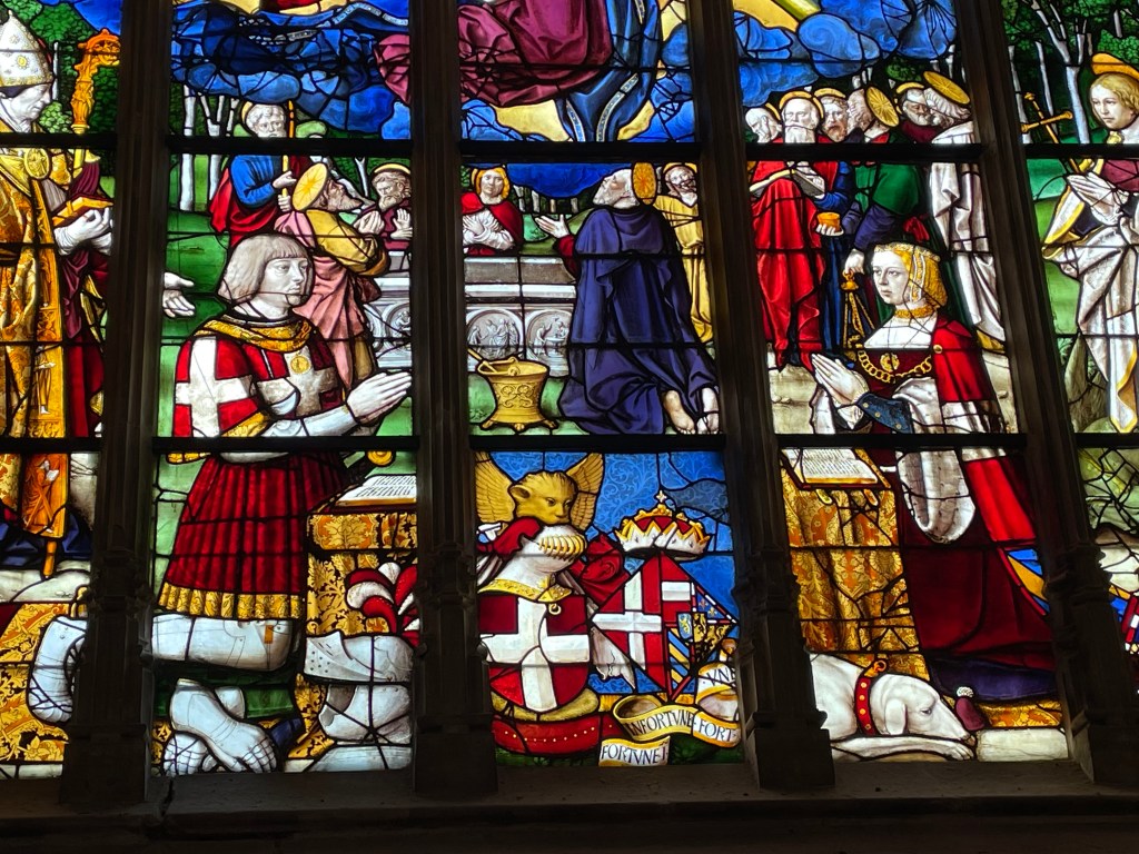 For us it was a ‘going back’ to Maximilian and Mary (in the ‘Emperor’s Window’ )- their daughter was Margaret (‘of Austria’). She was unfortunate in her marital associations: