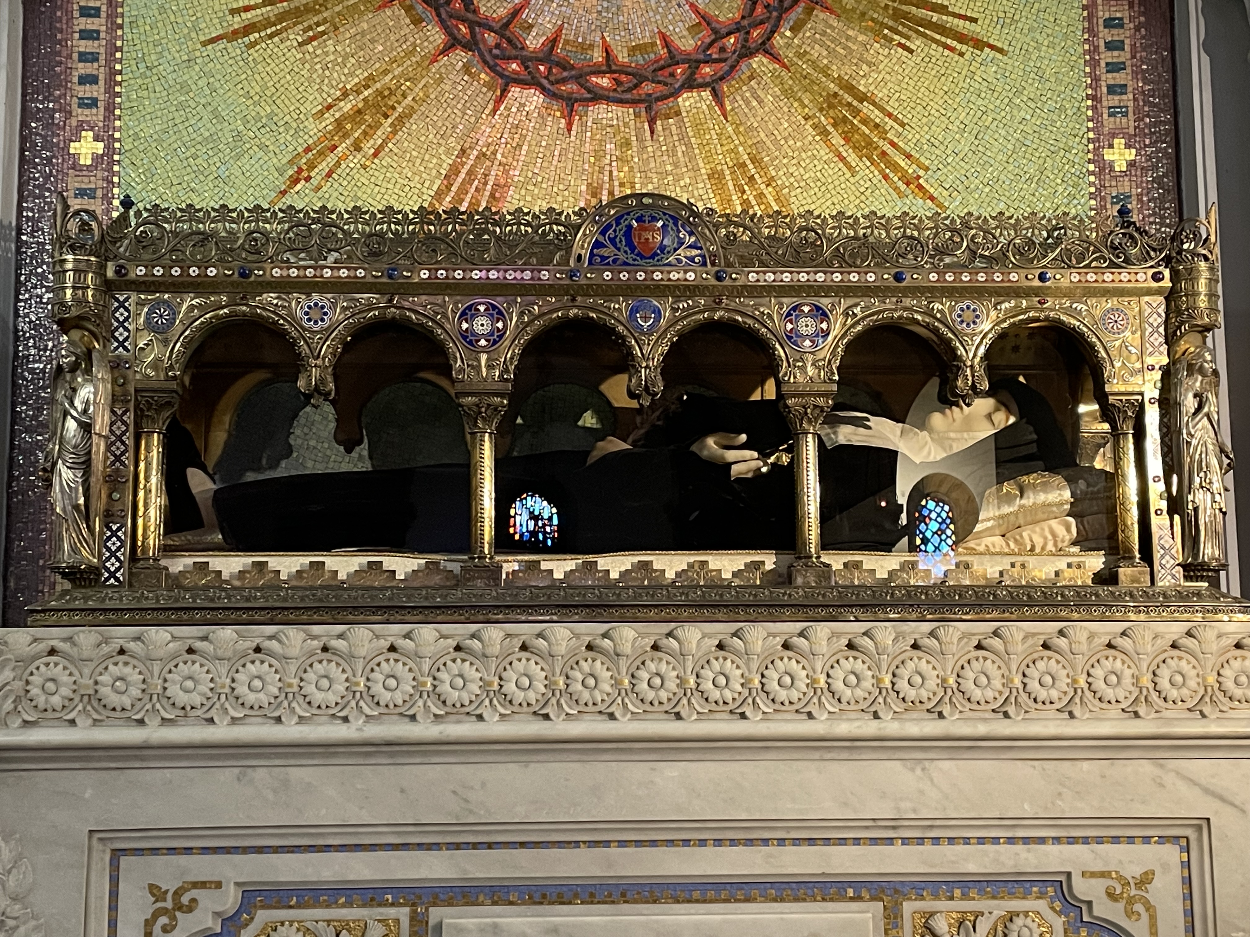 Before he was entombed, Vianney’s body was fitted with a wax mask.