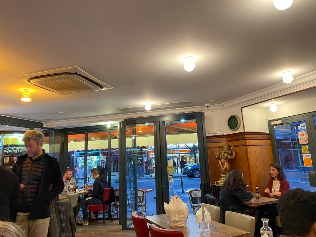 We finished the evening talking to management about the restaurant (Sri Lankan) and the differences between French bhajiis and UK bhajiis.
