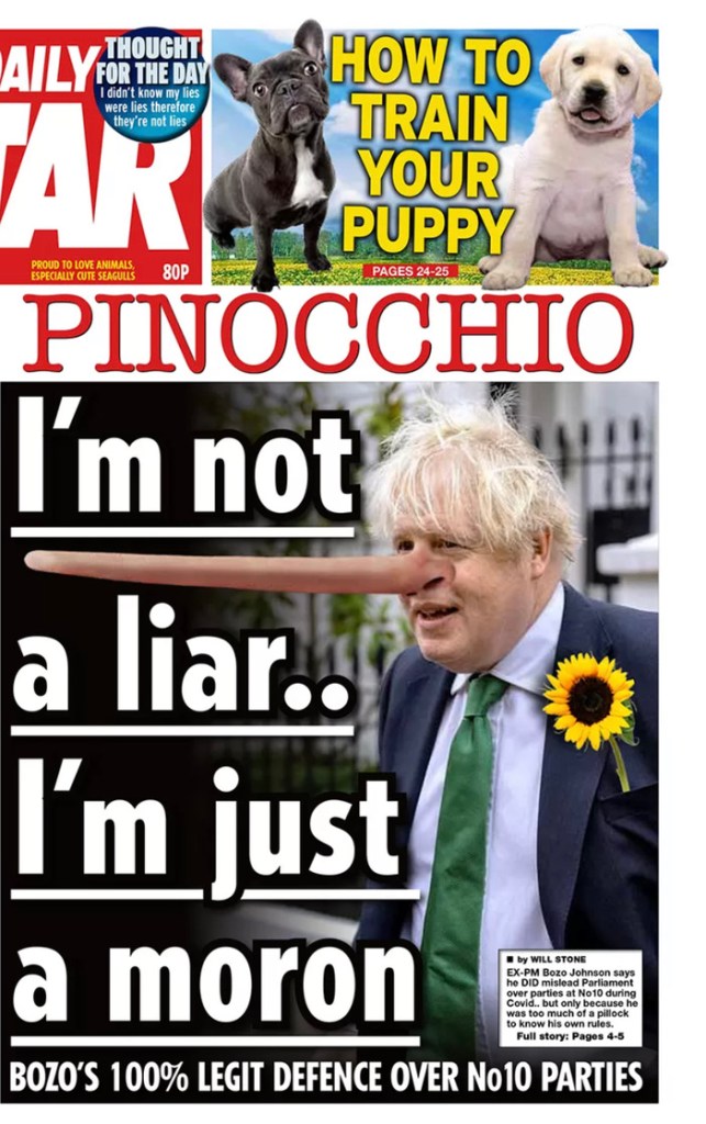 Now, after a period of rule which became so chaotic that even his own MPs turned against him, it would seem that we were absent from the country on a day (21st March 2023) when, in front of a Committee of MPs his lies and failings became, at last, ‘fully revealed ‘blindingly obvious’.