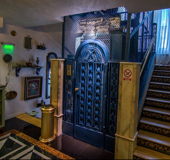 Much has changed – but not everything: the 1930’s lift shaft (the lift itself is recent)
