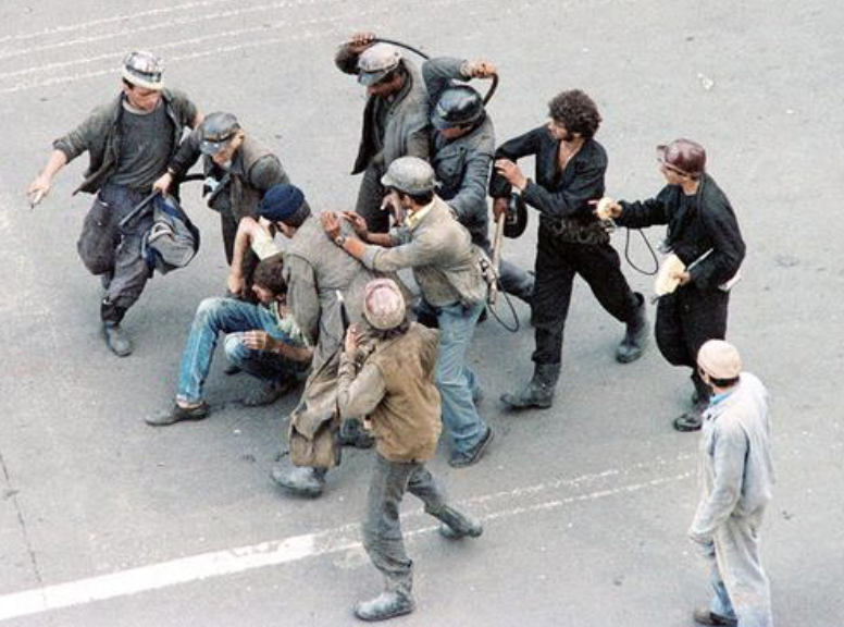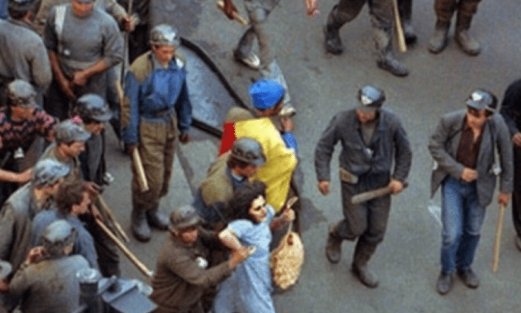 To suppress opposition the ‘new’ government encouraged a violent invasion of București by miners from the Petroșani area (a remote series mining communities 300+ kms/7 hours from București)