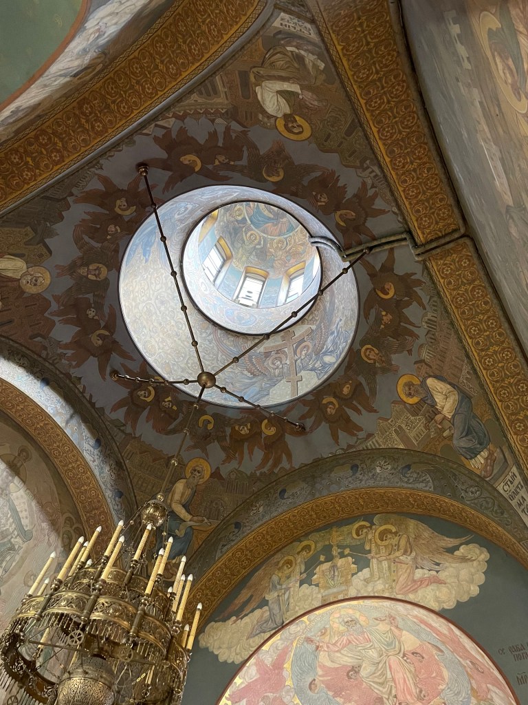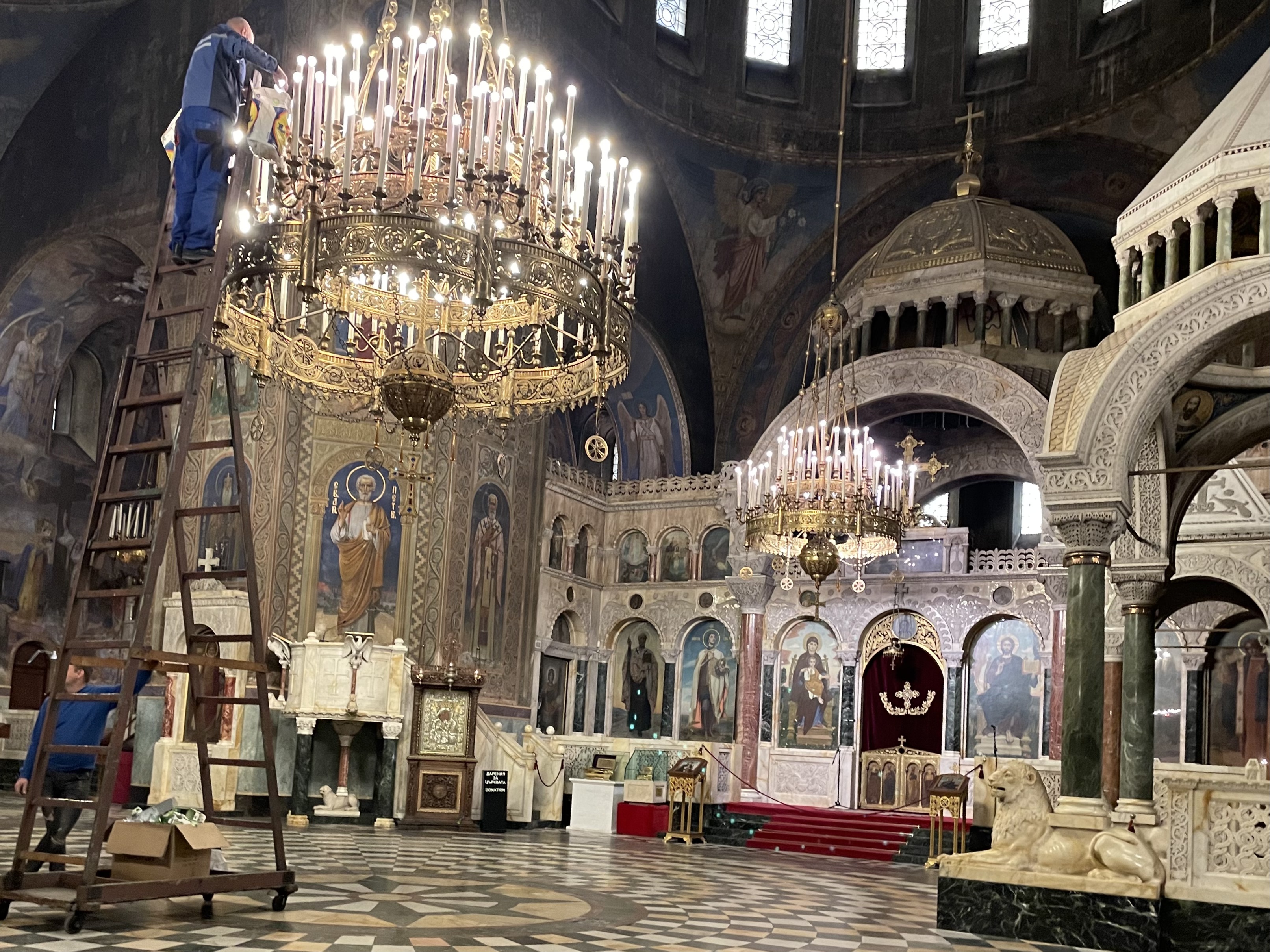 The cathedral is one of the largest Orthodox cathedrals (size matters – but Belgrade’s is larger). Apparently capable of holding 10,000 people (but would local, western influenced EU Health and Safety regulation permit ?… there are many exits)
