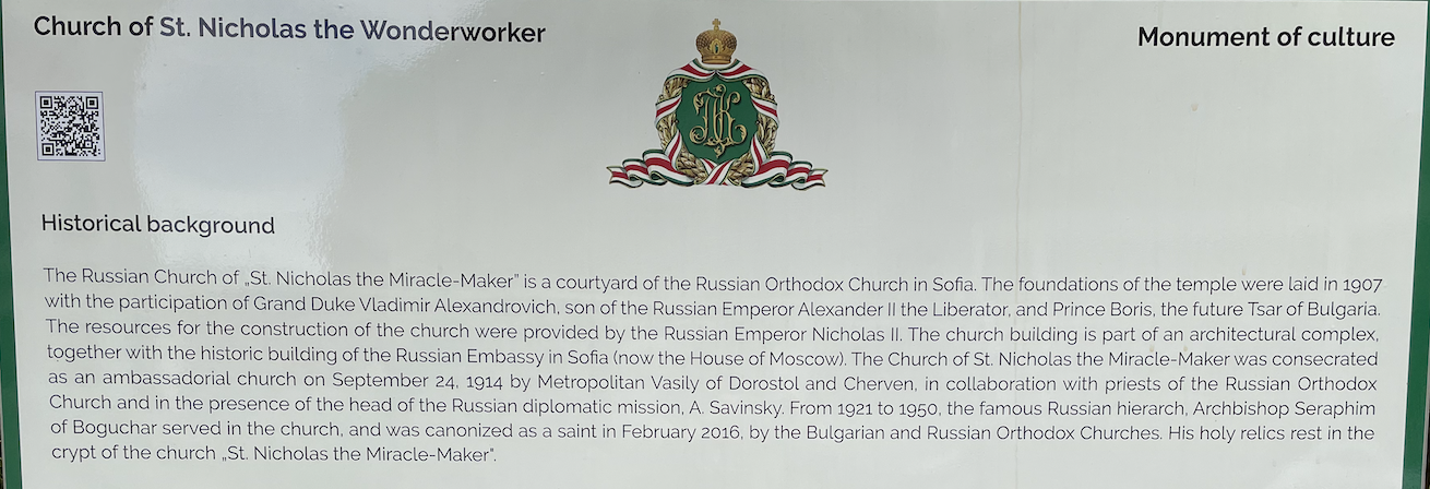 Russian views & influence (that the Bulgarian Orthodox Church in 1914 was an ‘error’ and thus schismatic) could not be ignored. Therefore whilst the huge Alexander Nevski Cathedral was being constructed, the Russians built their own church.