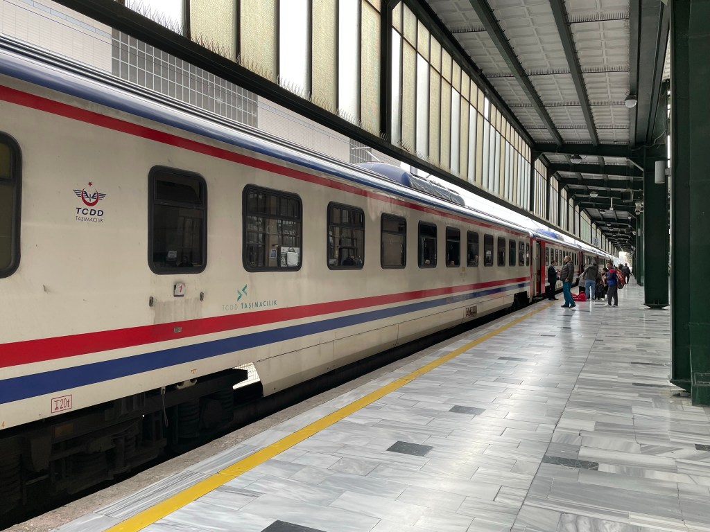 Arrival in Ankara – an enormous completely new station set next to the old main station – which as we cross into we see a train that will be heading east