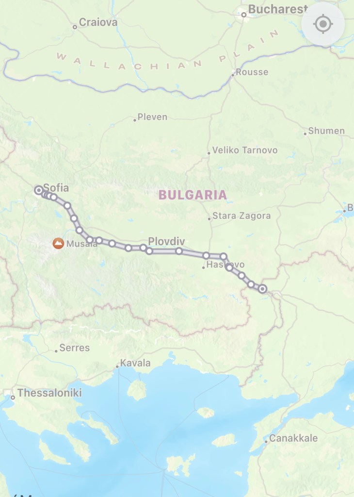 This train is the last surviving link in the Orient Express route. At the moment it is the only international train in Bulgaria. Covid has severed other direct links (Serbia/Greece)… they will eventually return. The present situation of Bulgaria is manifest in what is happening with its railways (and what can see from a train). An extraordinary amount of change is occurring. So we travel through the strange (to us) mix of old and new, poverty and wealth. The contrast in much greater than in U.K….. it’s a juxtaposition…. Both next to each other. The main railway lines are literally being ripped up and new lines are being built…. So very slow and old occurs, then suddenly speed hits 150/160 kms….. and we pass areas of development next to barren industrial sites left from the Old Time. Politics seem to reflect this ‘churning’. It must be deeply unsettling for many people. We have experienced similar in Romania (where a similar action occurring on the line from Bucharest to Arad via Brasov