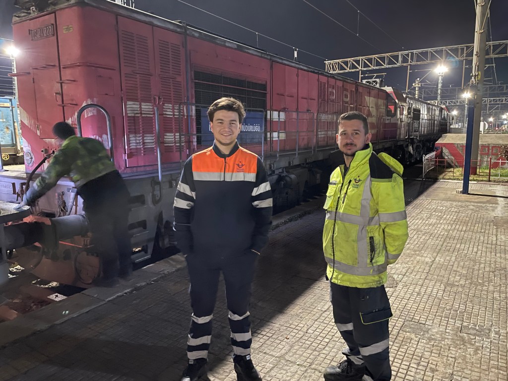 On watching the changing of engines. The first a modern electric loco was added, then two grumbling diesels (‘very old’ I was told) & that would take us to Edirne, the staff were insistent that I photographed them – and then had my own photo.