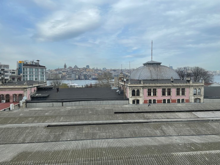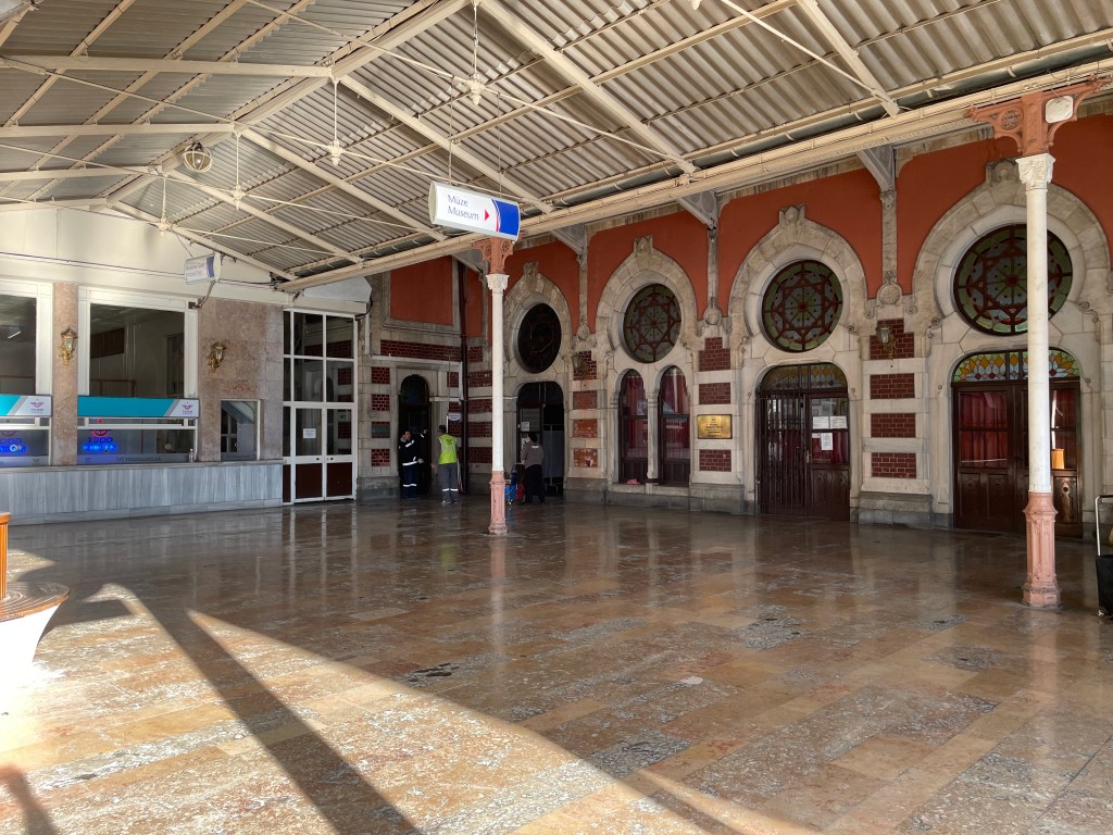 Istanbul… and discover (eventually after confusing information) that our hotel ‘Istasyon’ is exactly that…. Next to the old terminus used by the Orient Express. Photos across roof of station to the waiting room etc