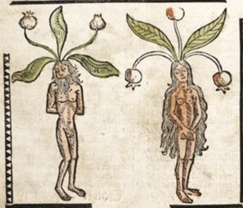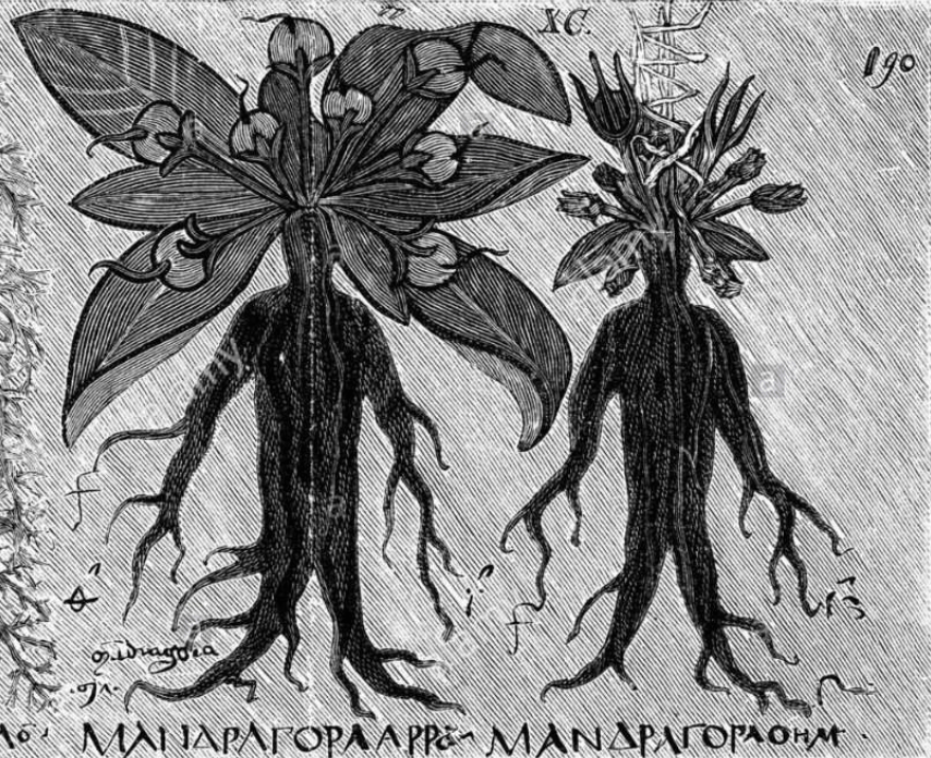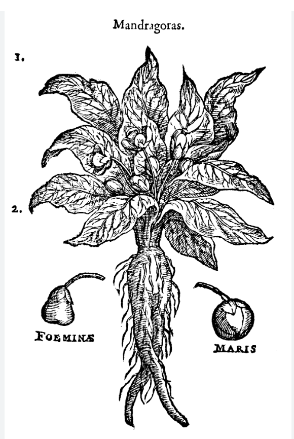 … The roots of Mandrake were supposed to bear a resemblance to the human form, on account of their habit of forking into two and shooting on each side…..