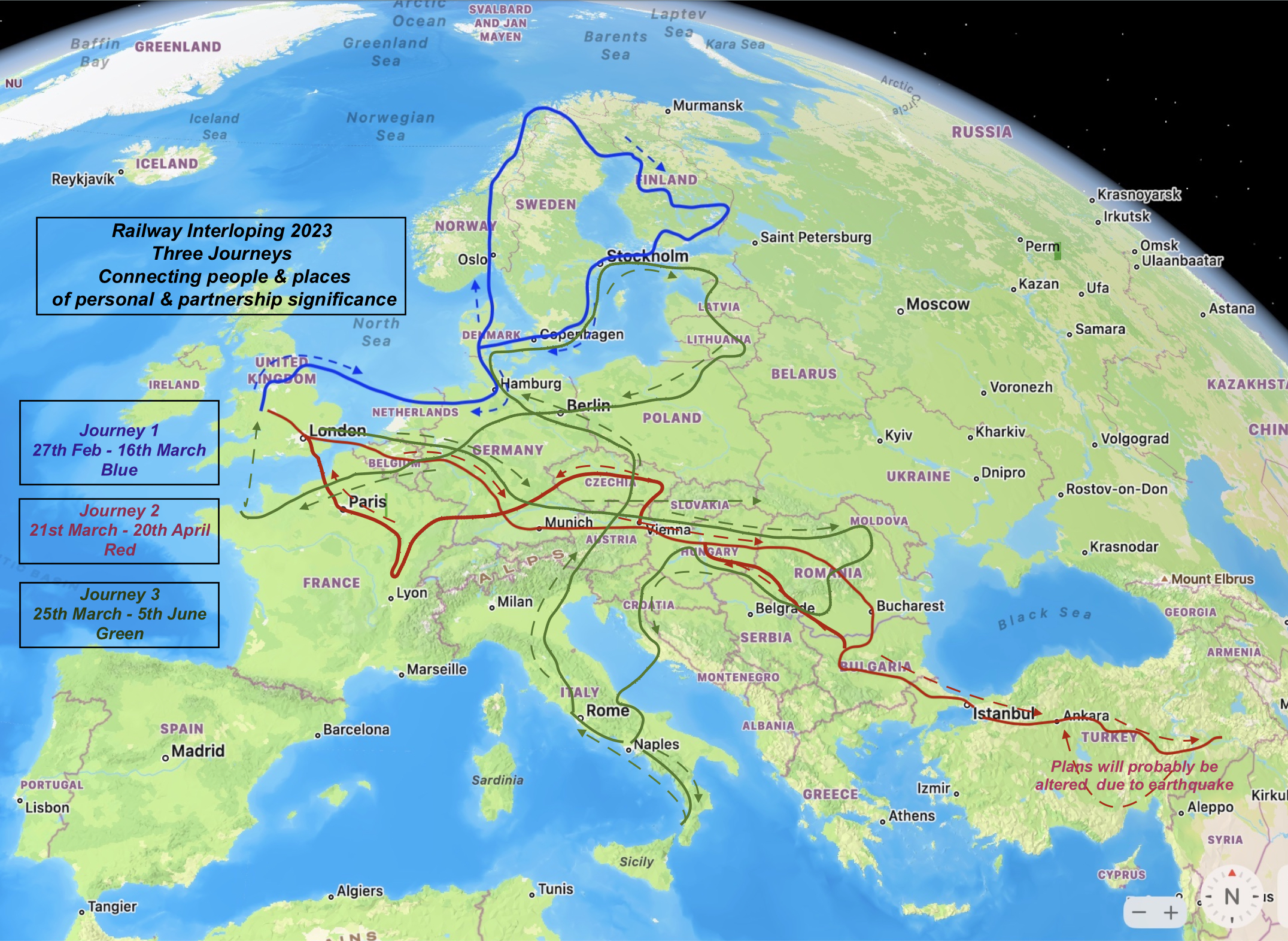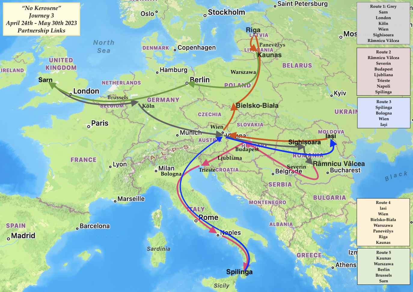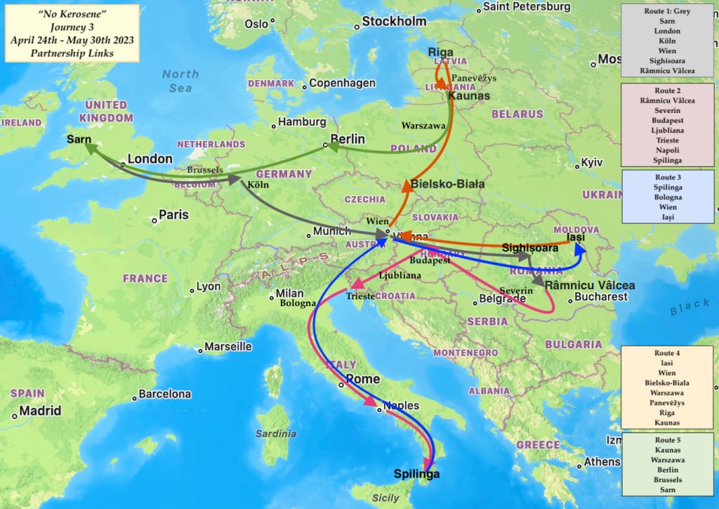 Three journeys made by rail & connecting ferries & buses visiting friends & partners with whom we’ve worked since 1990